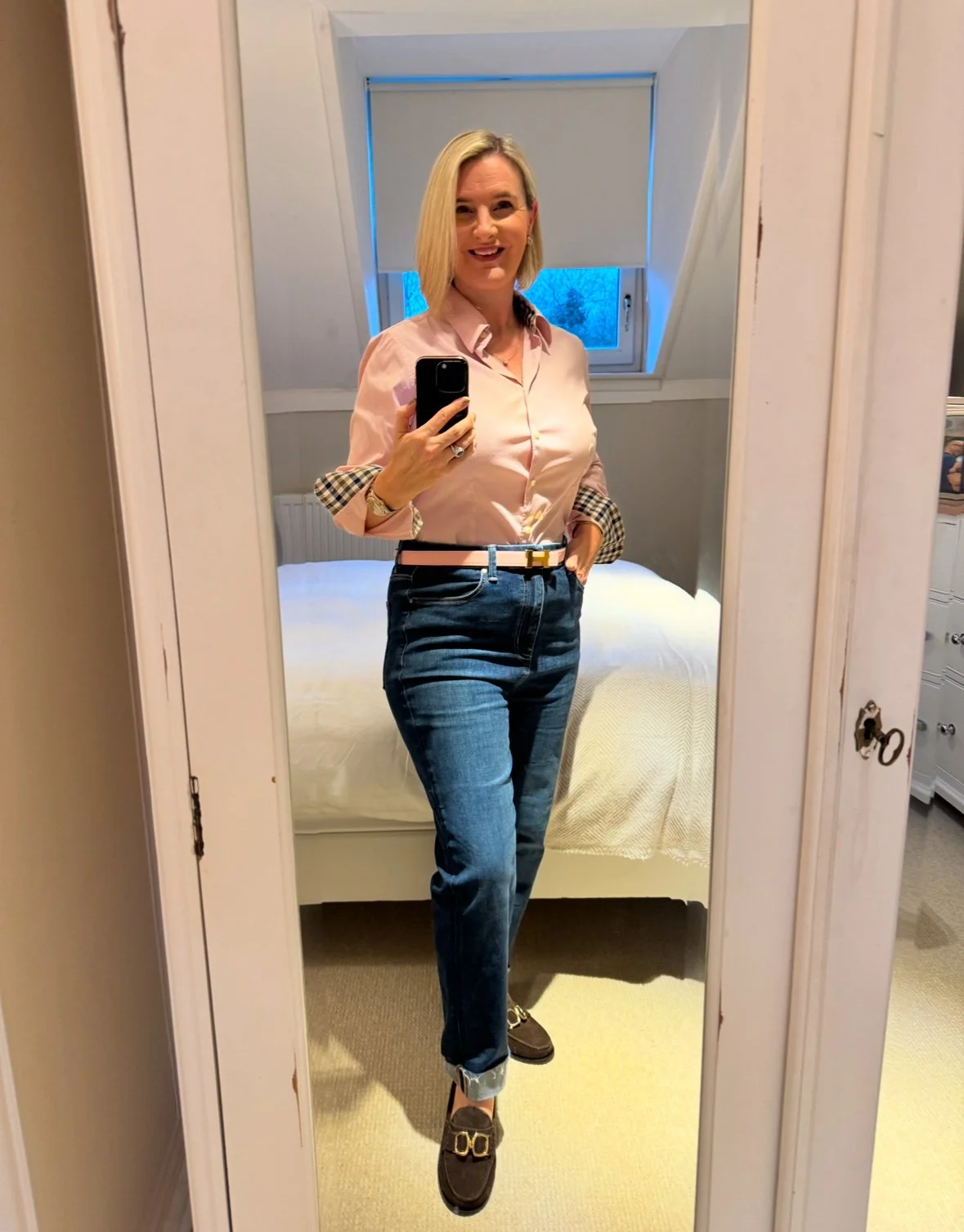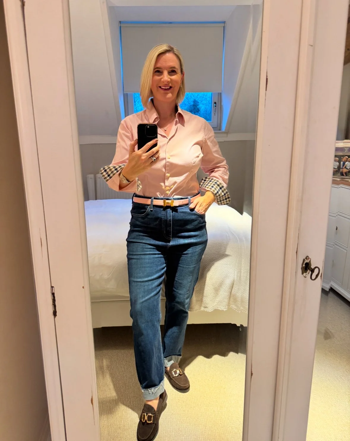 Shirt from Aquascutumn, Jeans and shoes from M&S.