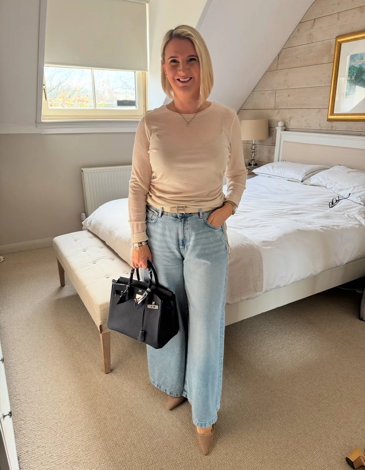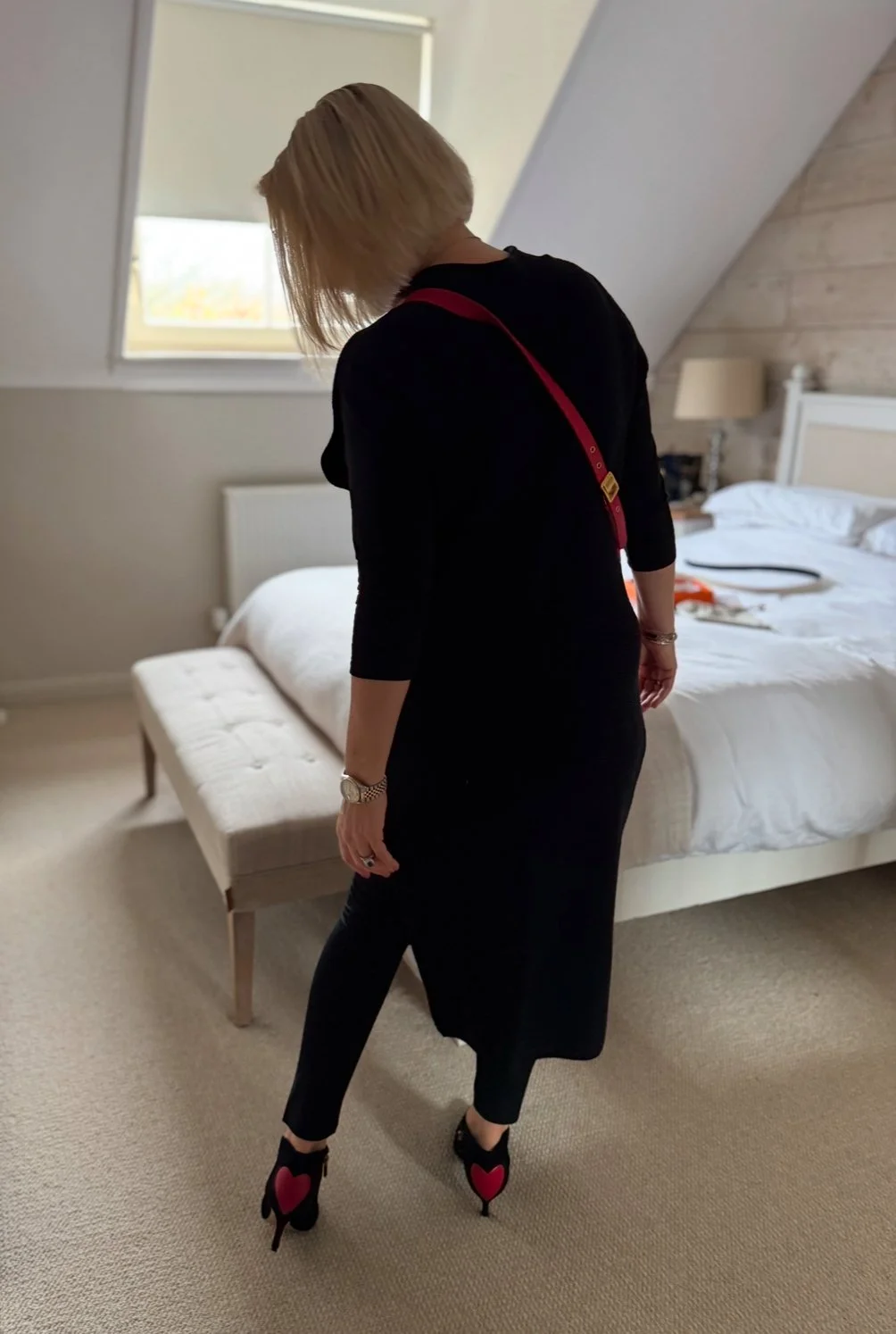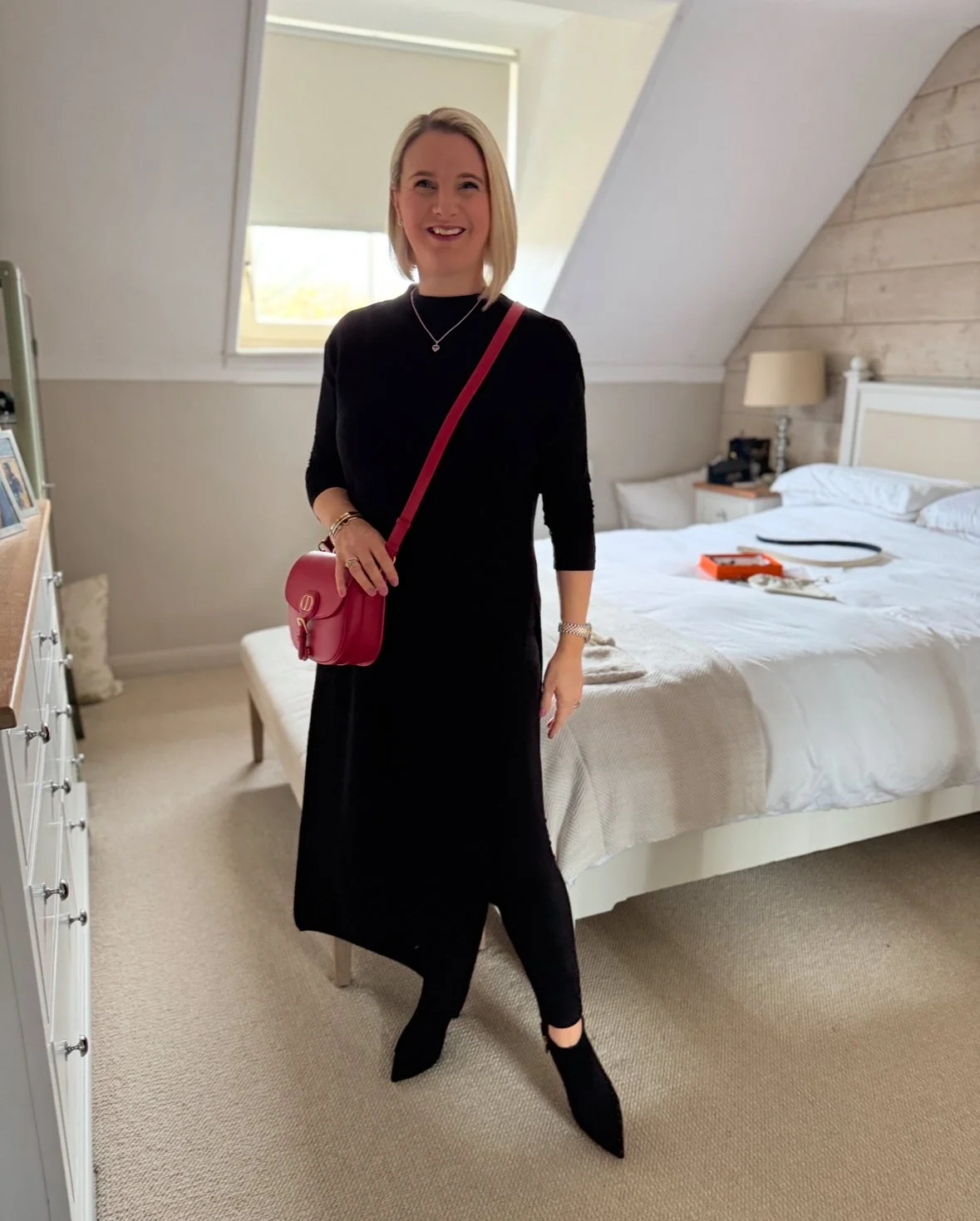 Long tunic jumper from Jigsaw, Top from M&S, Leggings from Next, Bag and Boots from Dior