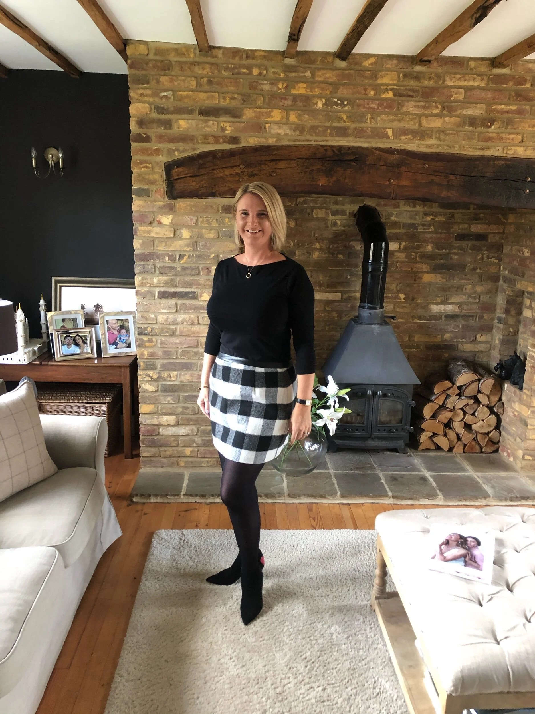 Top from M&S, Skirt from Tommy Hilfiger, Tights from Tesco, Boots from Christian Dior