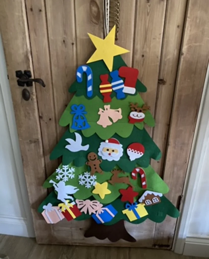 I bought Zak the little felt Christmas tree to decorate as he wishes. :)