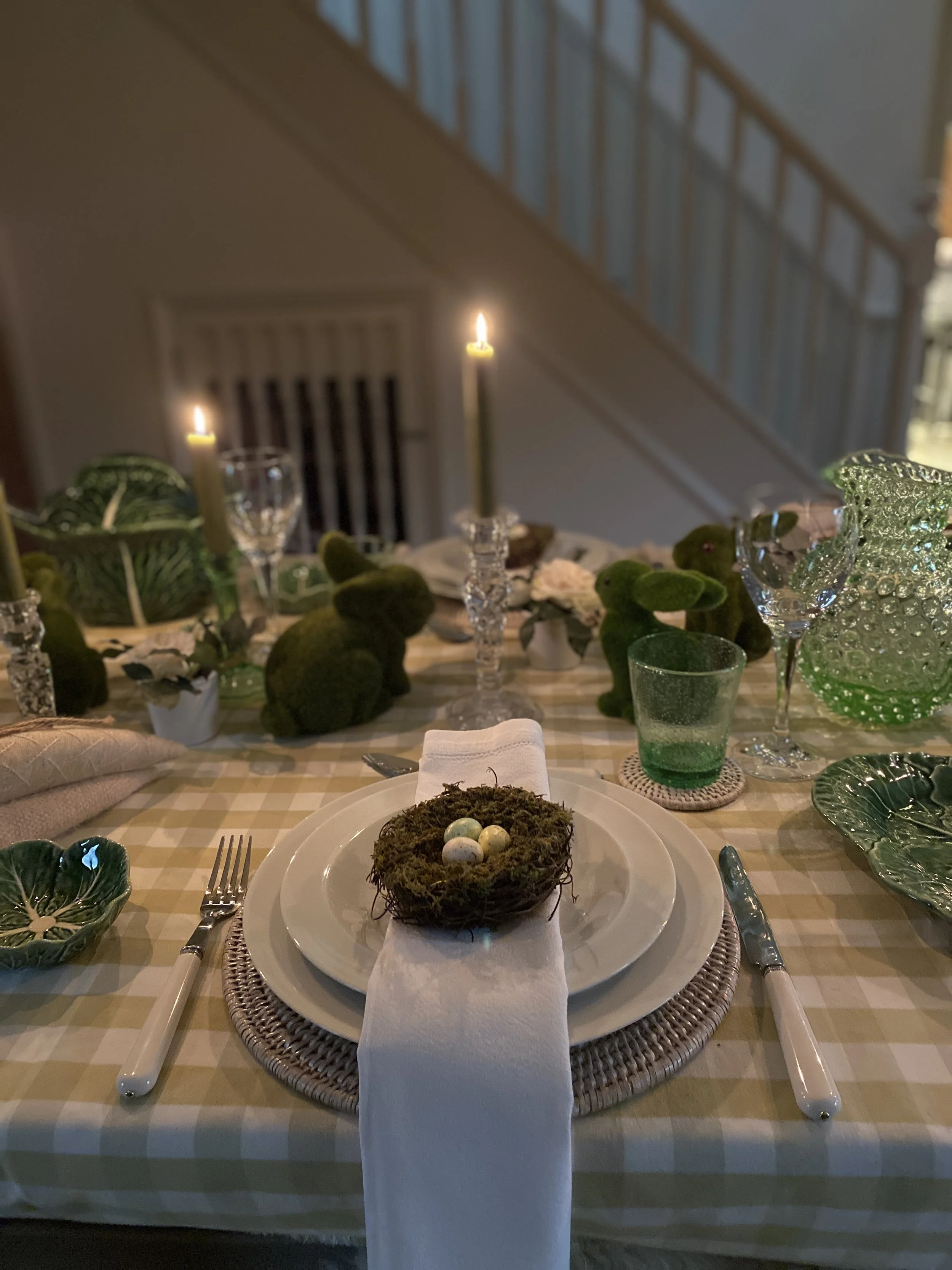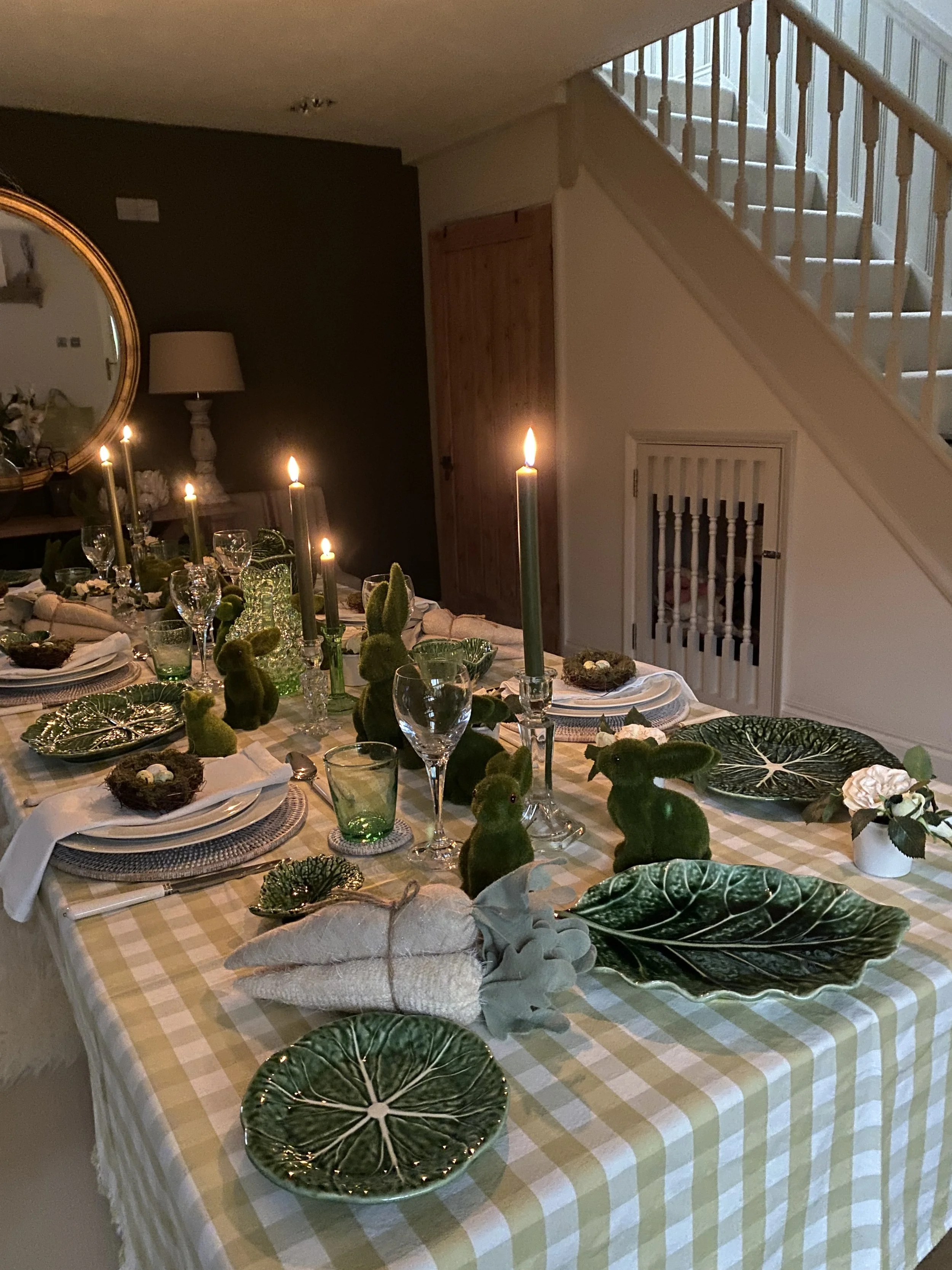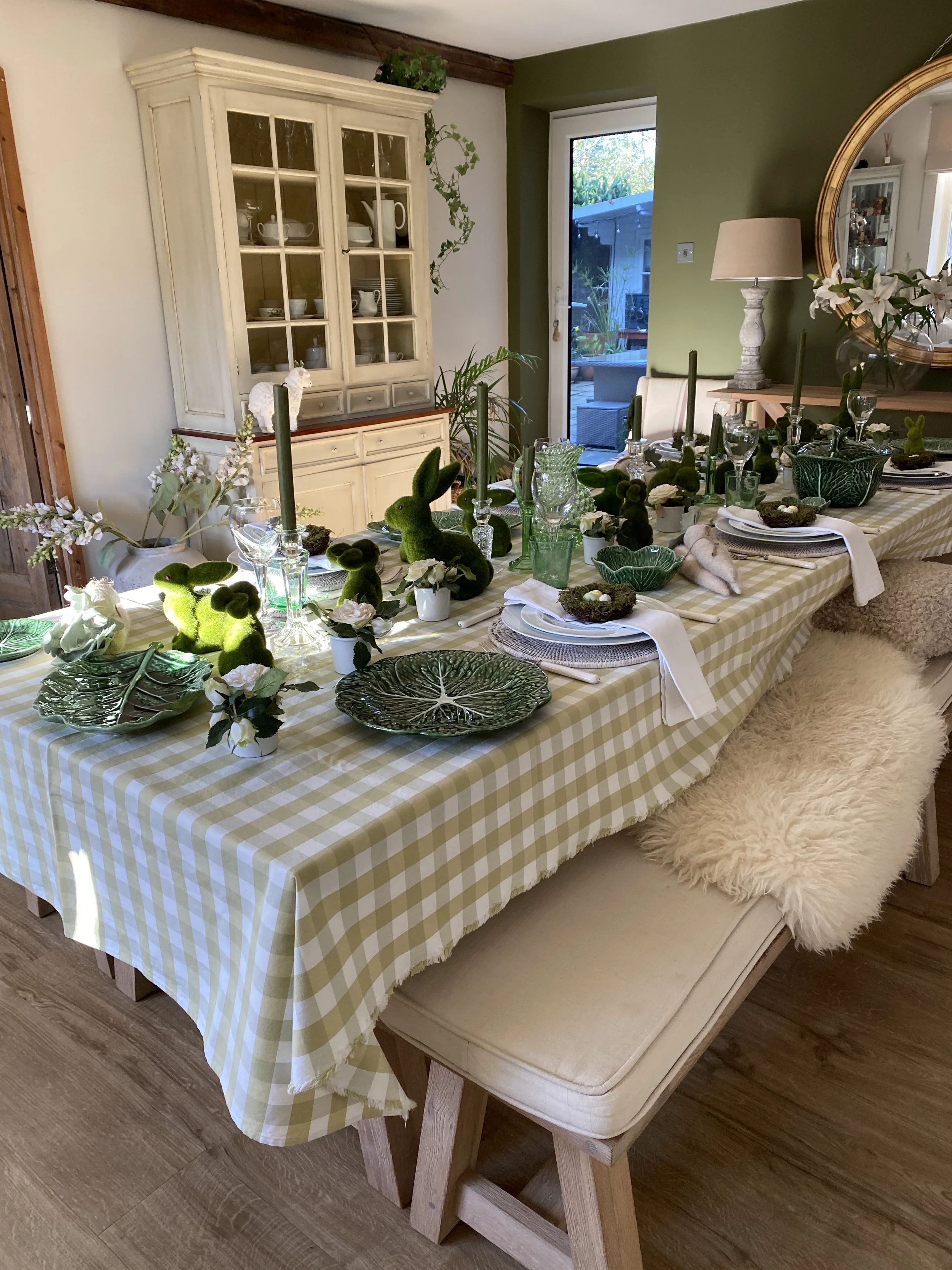 I had some time spare on Wednesday. I got up so early it added too many hours to the day. So I decided to make a start on my Easter table decor. It might not be the table I serve lunch at Easter, but I think it’s nice as a spring display anyway.