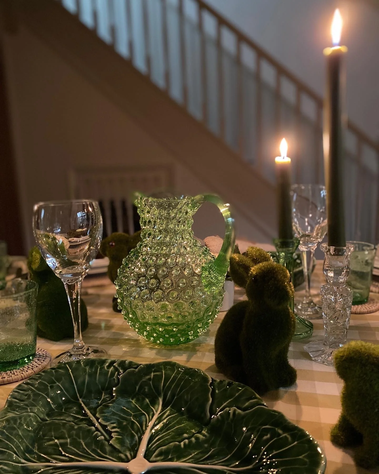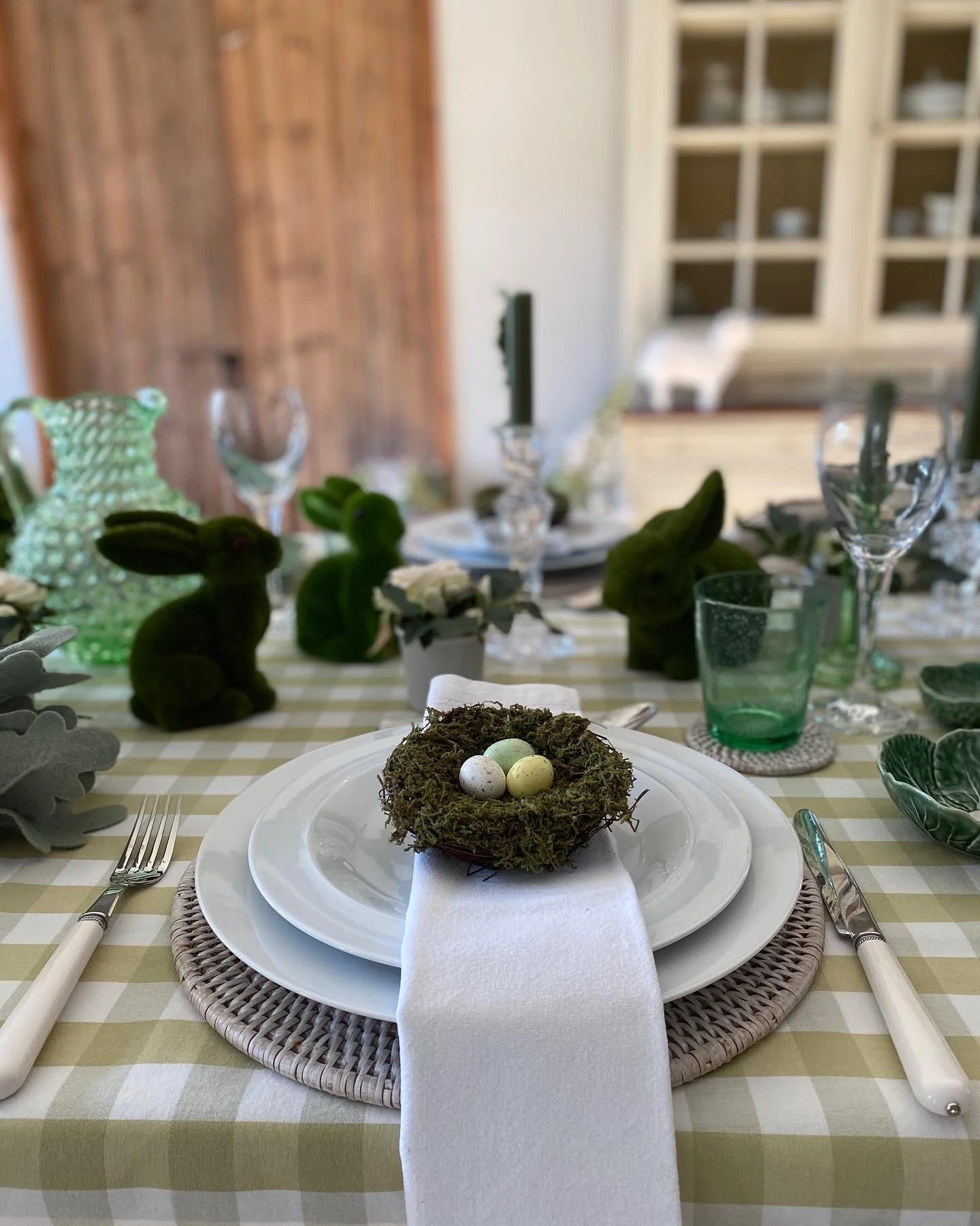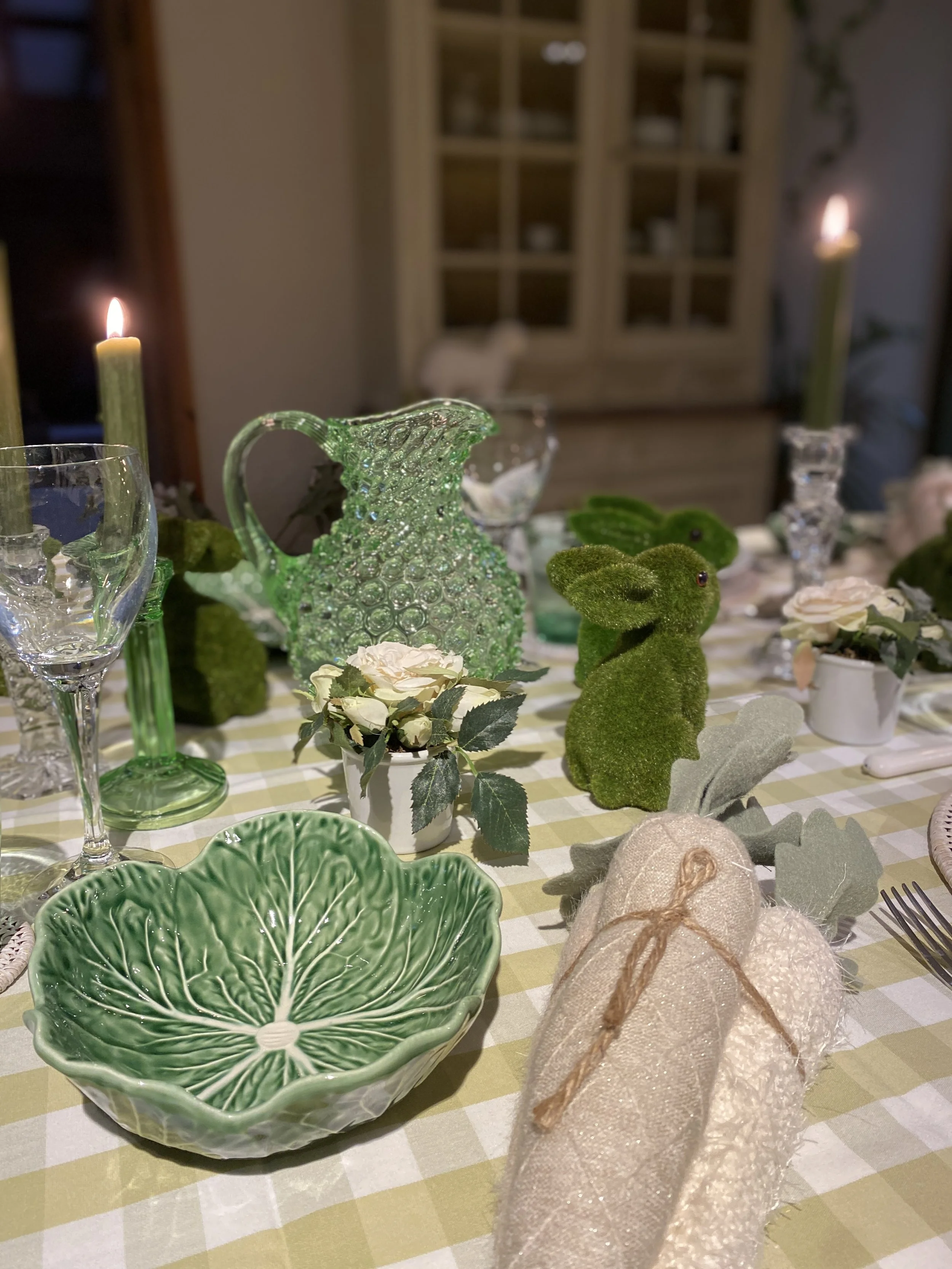 I had some time spare on Wednesday. I got up so early it added too many hours to the day. So I decided to make a start on my Easter table decor. It might not be the table I serve lunch at Easter, but I think it’s nice as a spring display anyway.