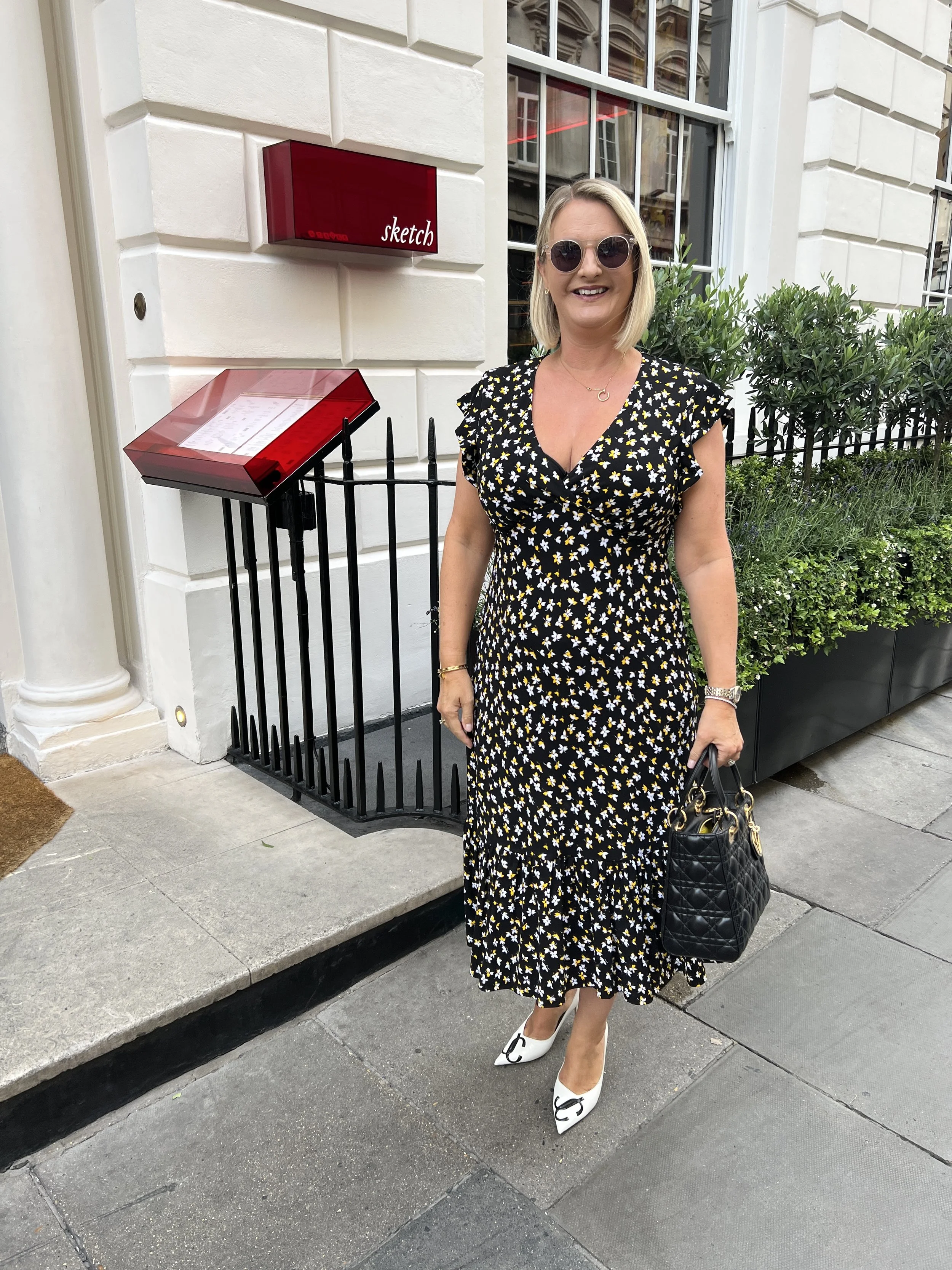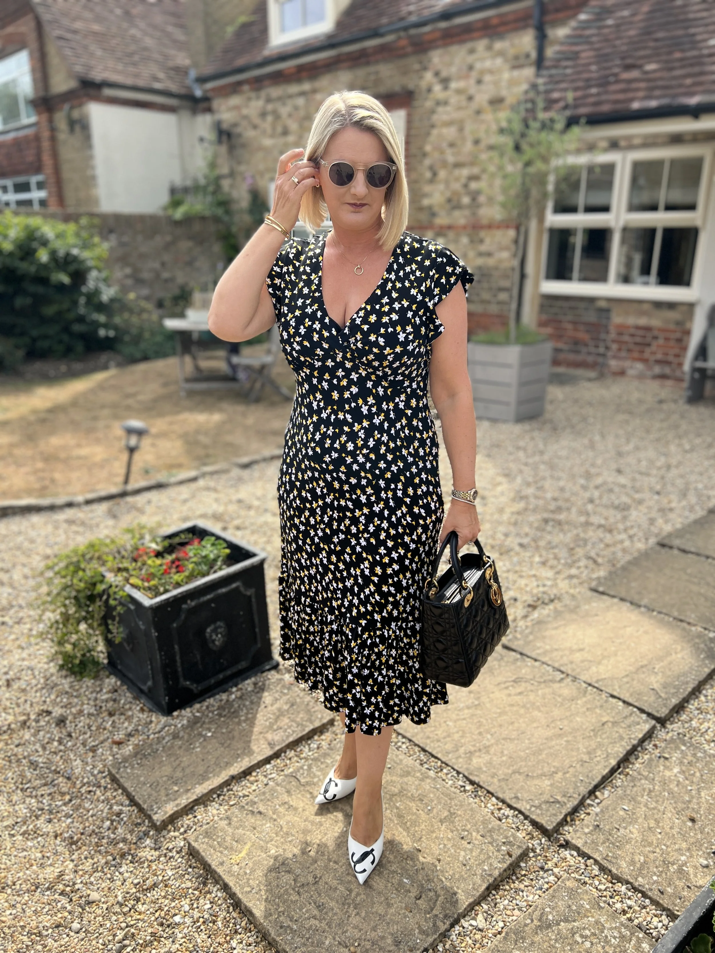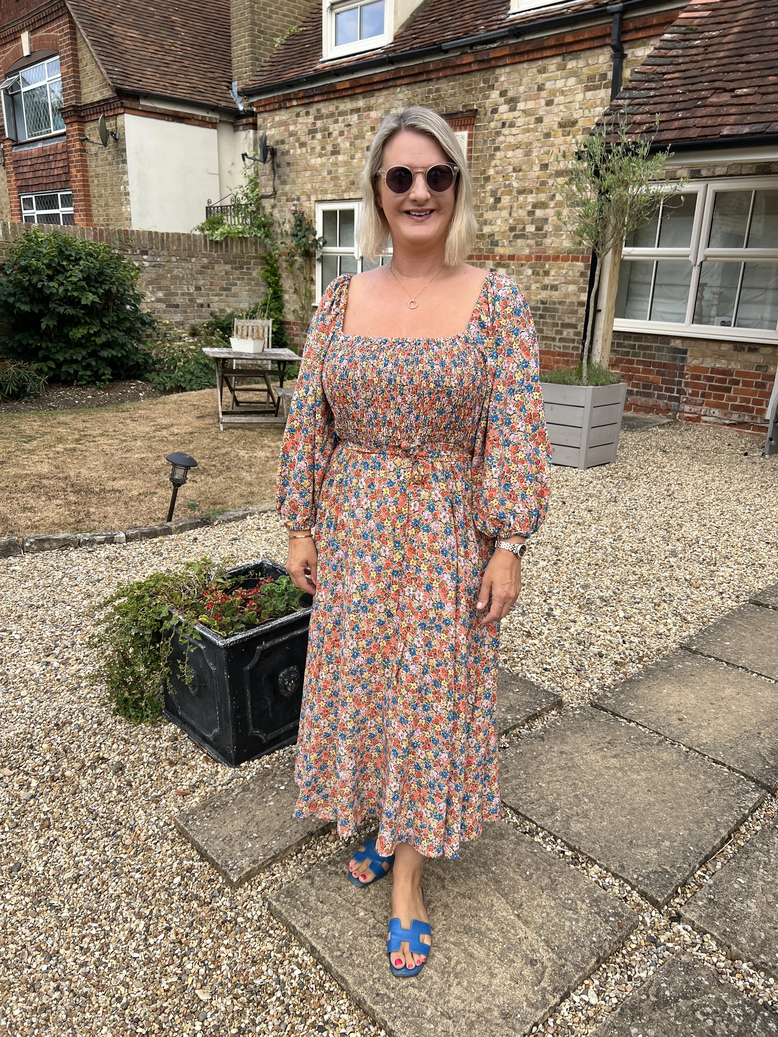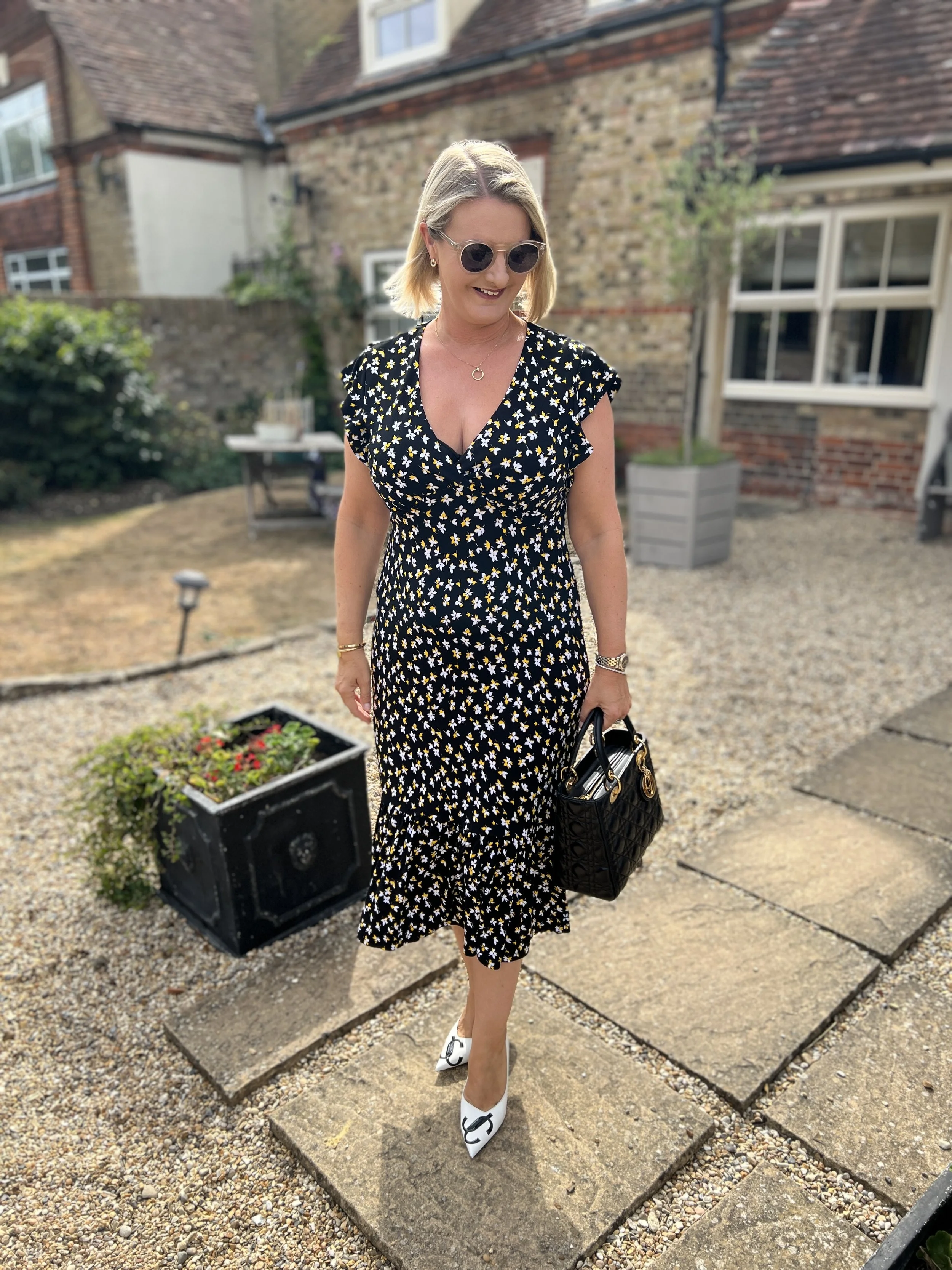 Dress from Marks and Spenser, Shoes from Hermes