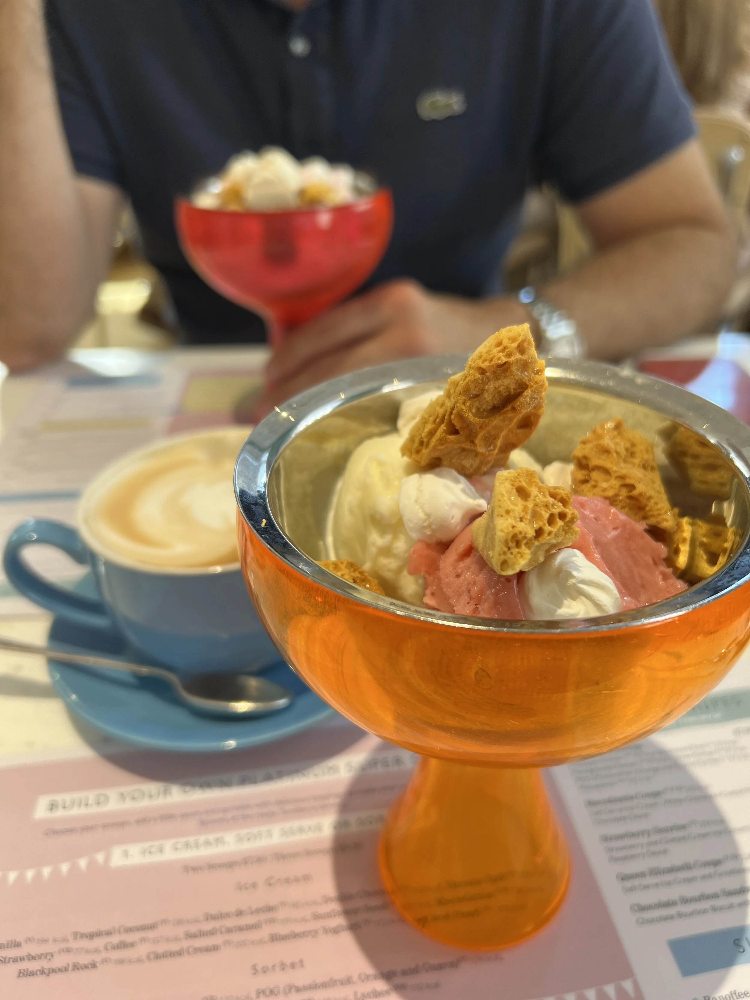 We then headed over to Fortnum and Mason for ice cream. We have our badges from a previous trip there, which entitles us to free toppings on a sundae.