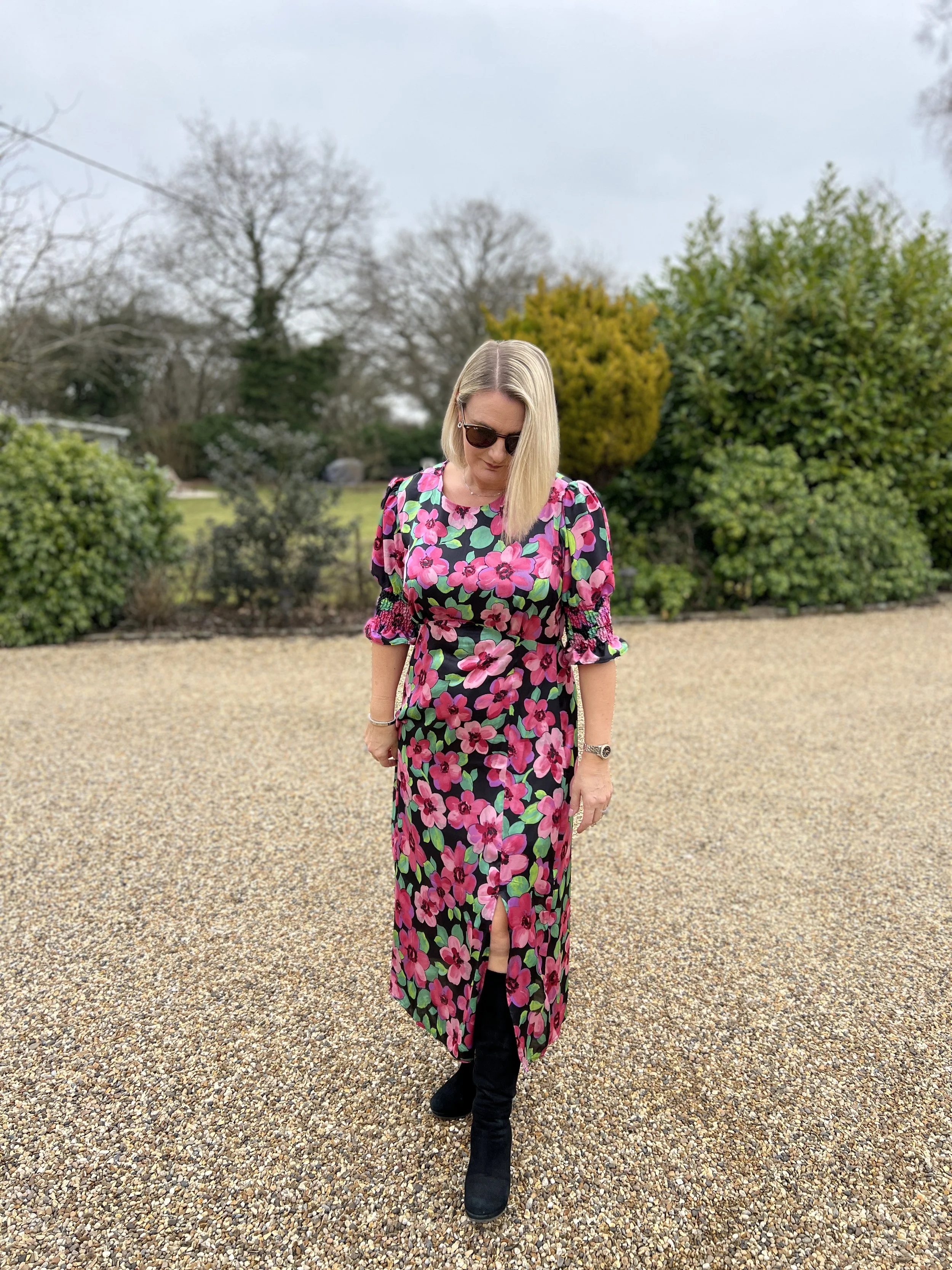 Dress (below) from Nobody’s Child (£18 in the sale), Boots from Hobbs, Bag from Chanel.