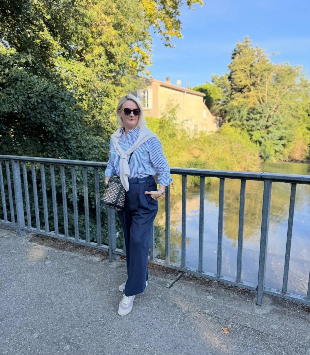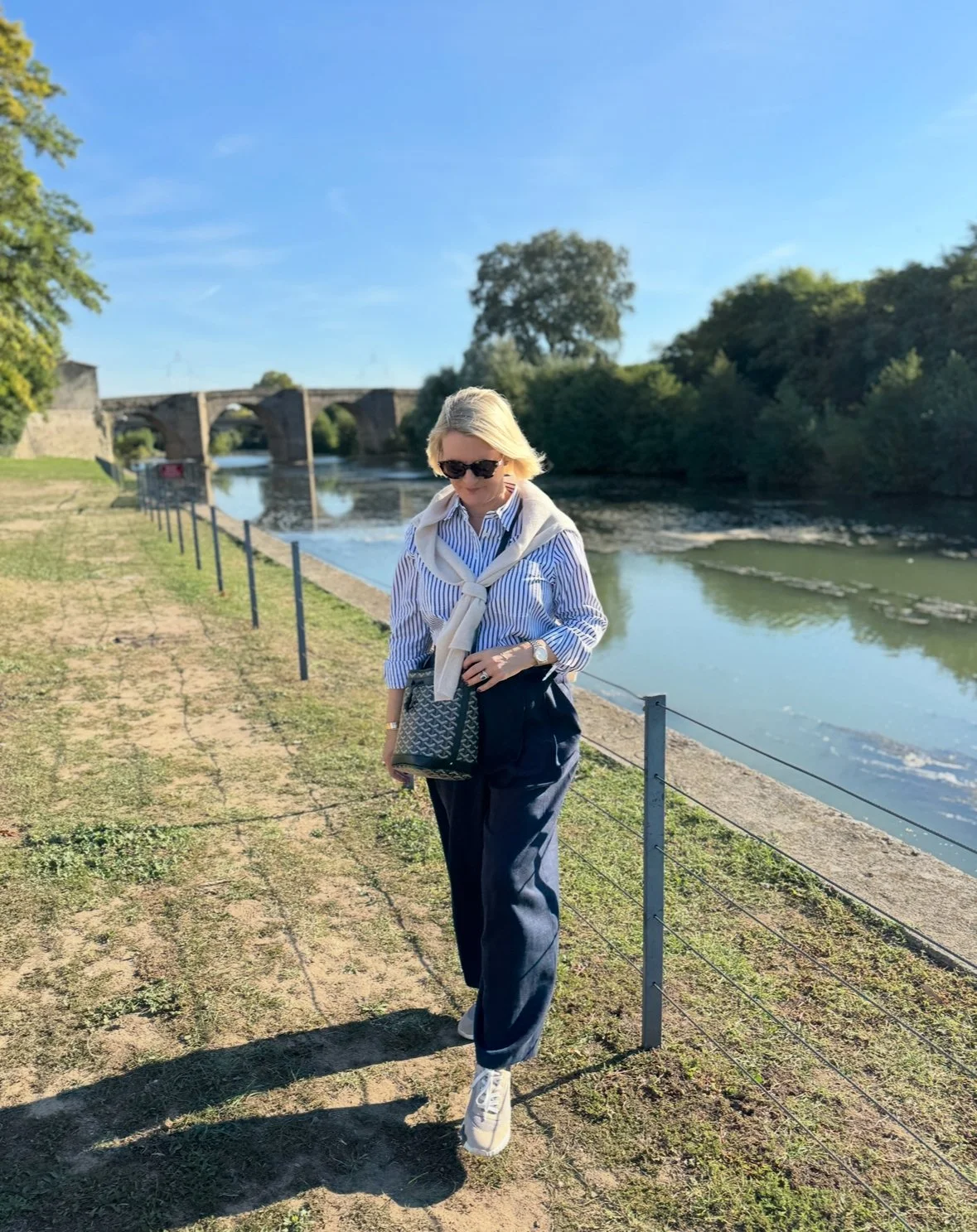 Shirt from Chris’s work wear wardrobe (but originally from Charles Tyrwhitt), Jeans from M&S, Shoes and Belt from Hermes, Bag from Goyard.