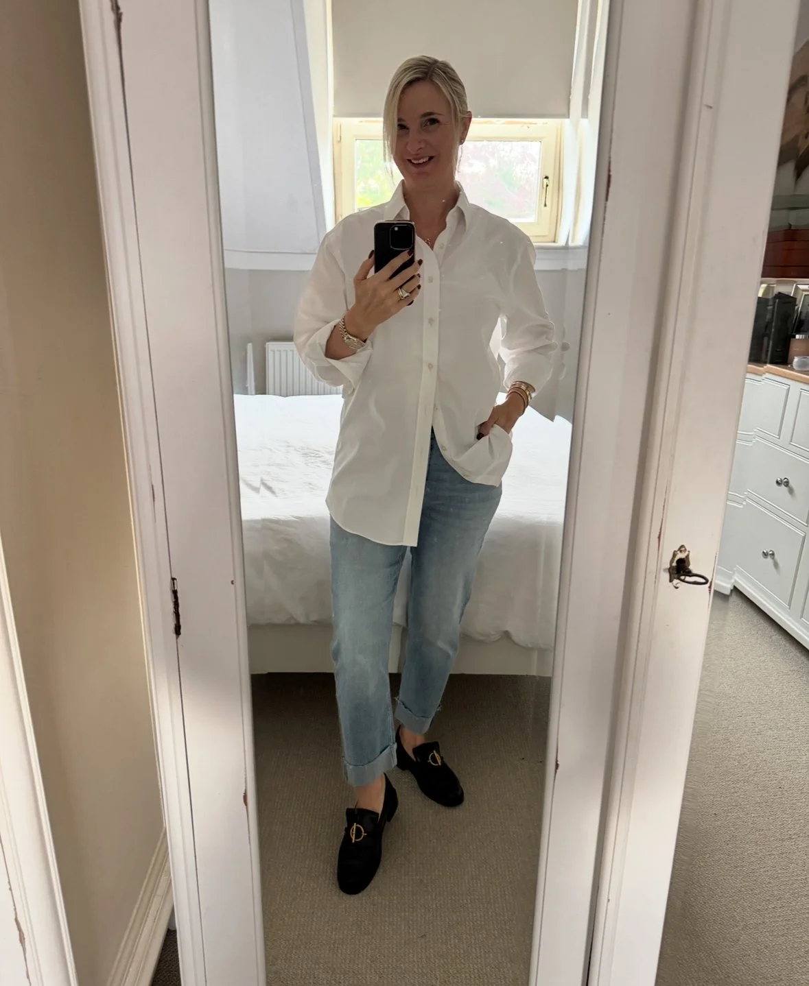 Shirt from Chris’s wardrobe (it’s hard to stop) Jeans from M&S, Shoes from Hermes