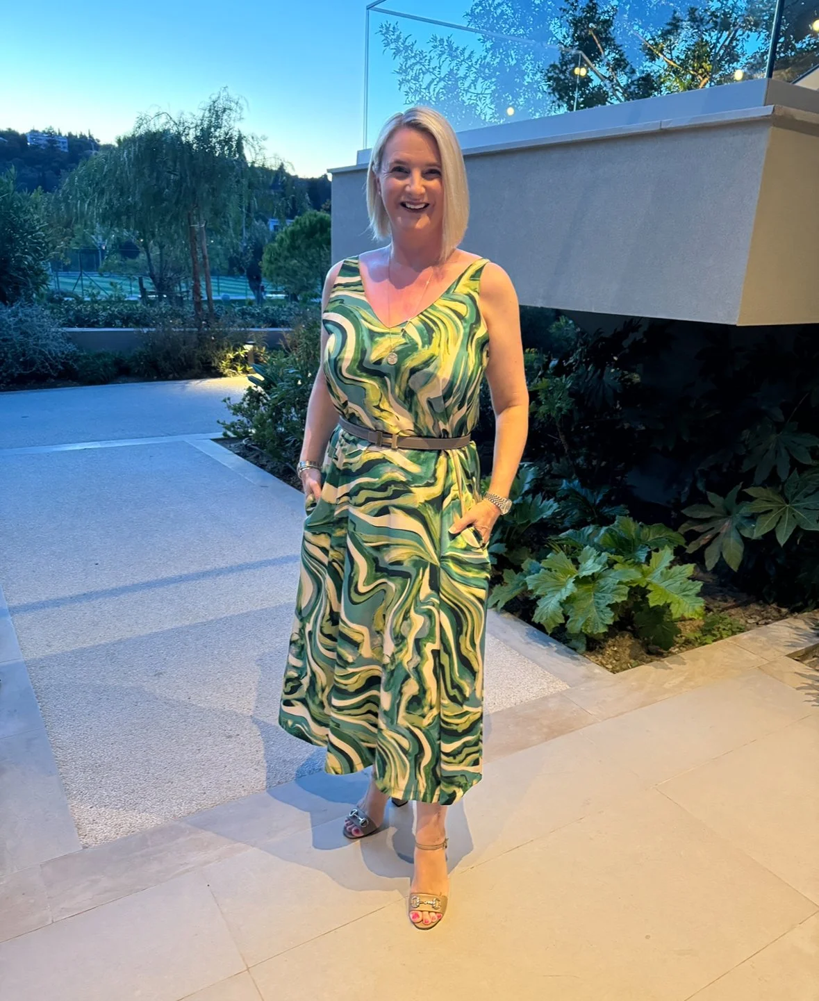 The weather held for the week, well, until right at the end. So we were able to get all dolled up for dinner most nights.