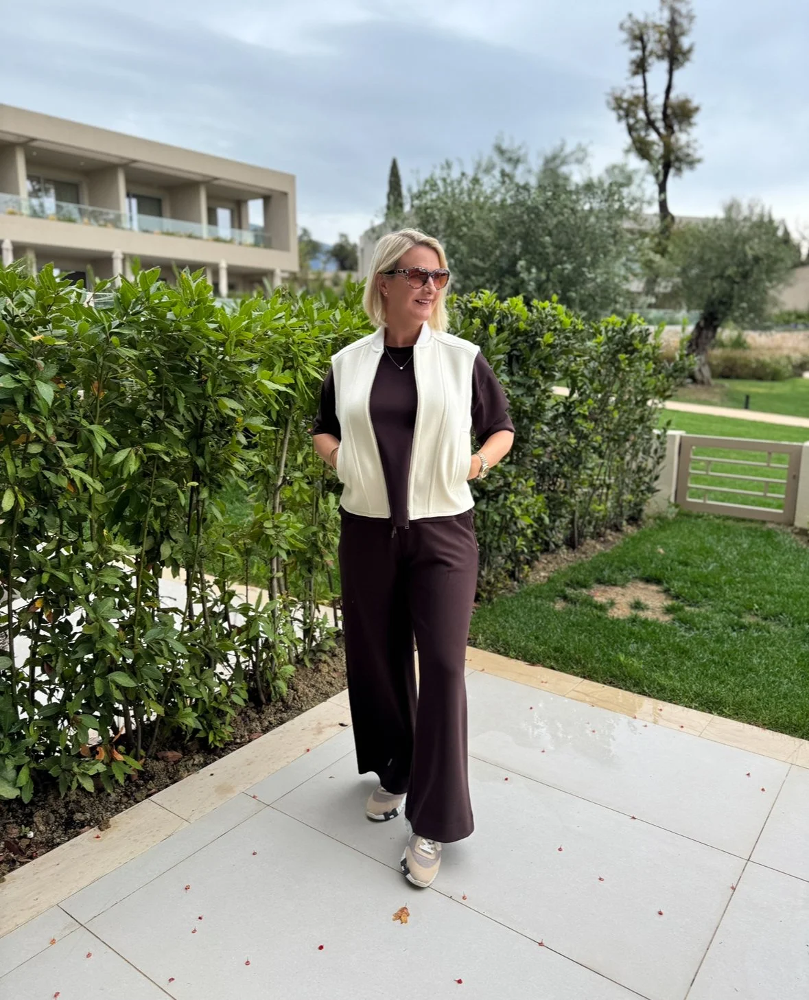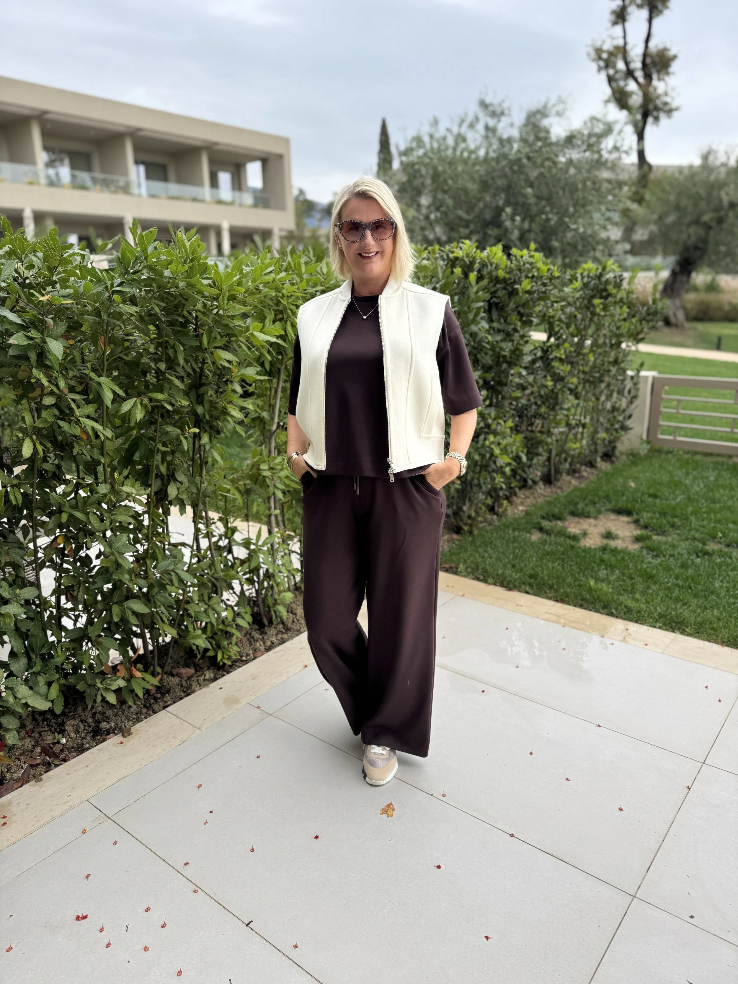 Tracksuit from River Island, Gilet from Me & Em, Shoes from Hermes