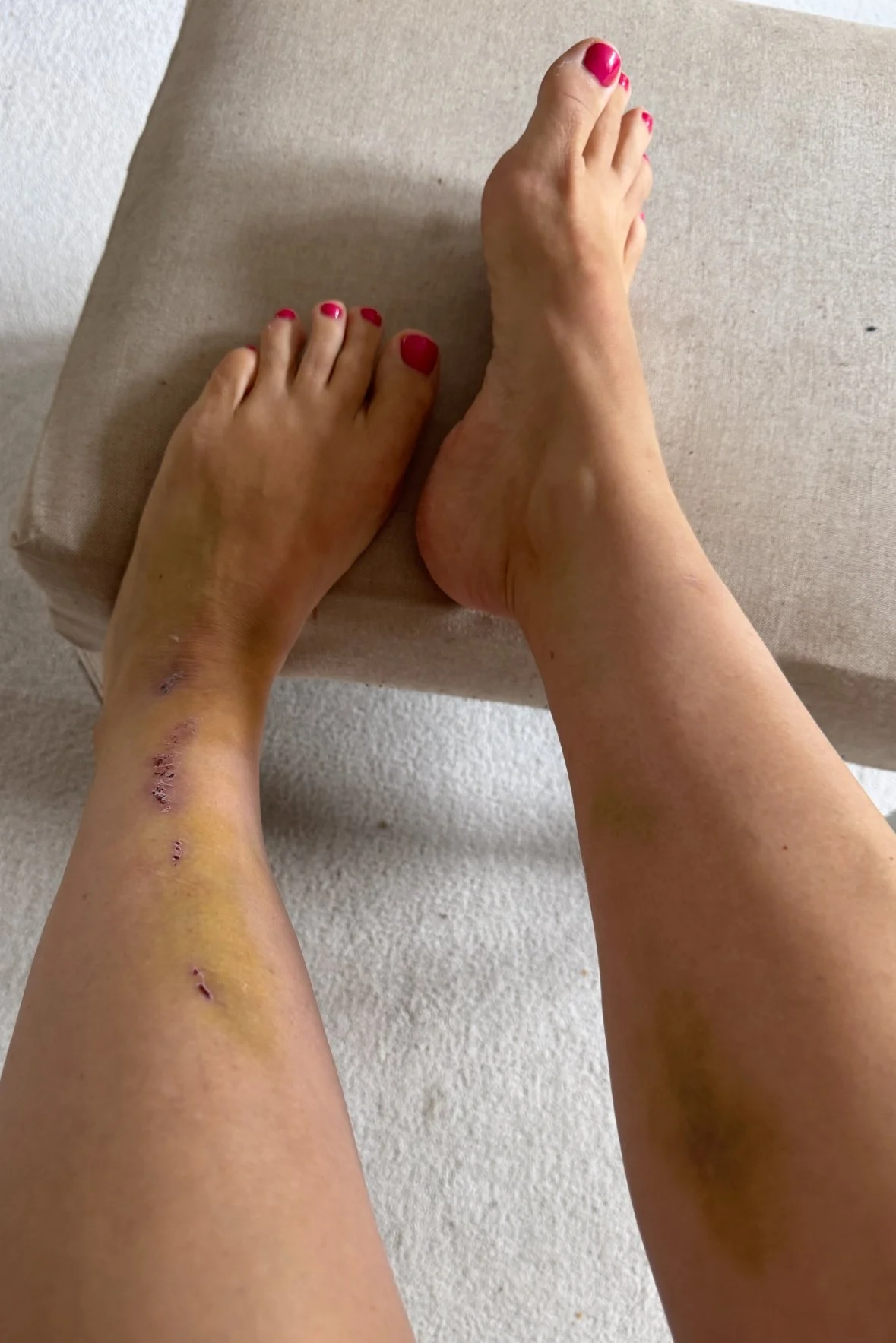 I looked a treat in my swimming cossi, all black and blue and struggling to walk.