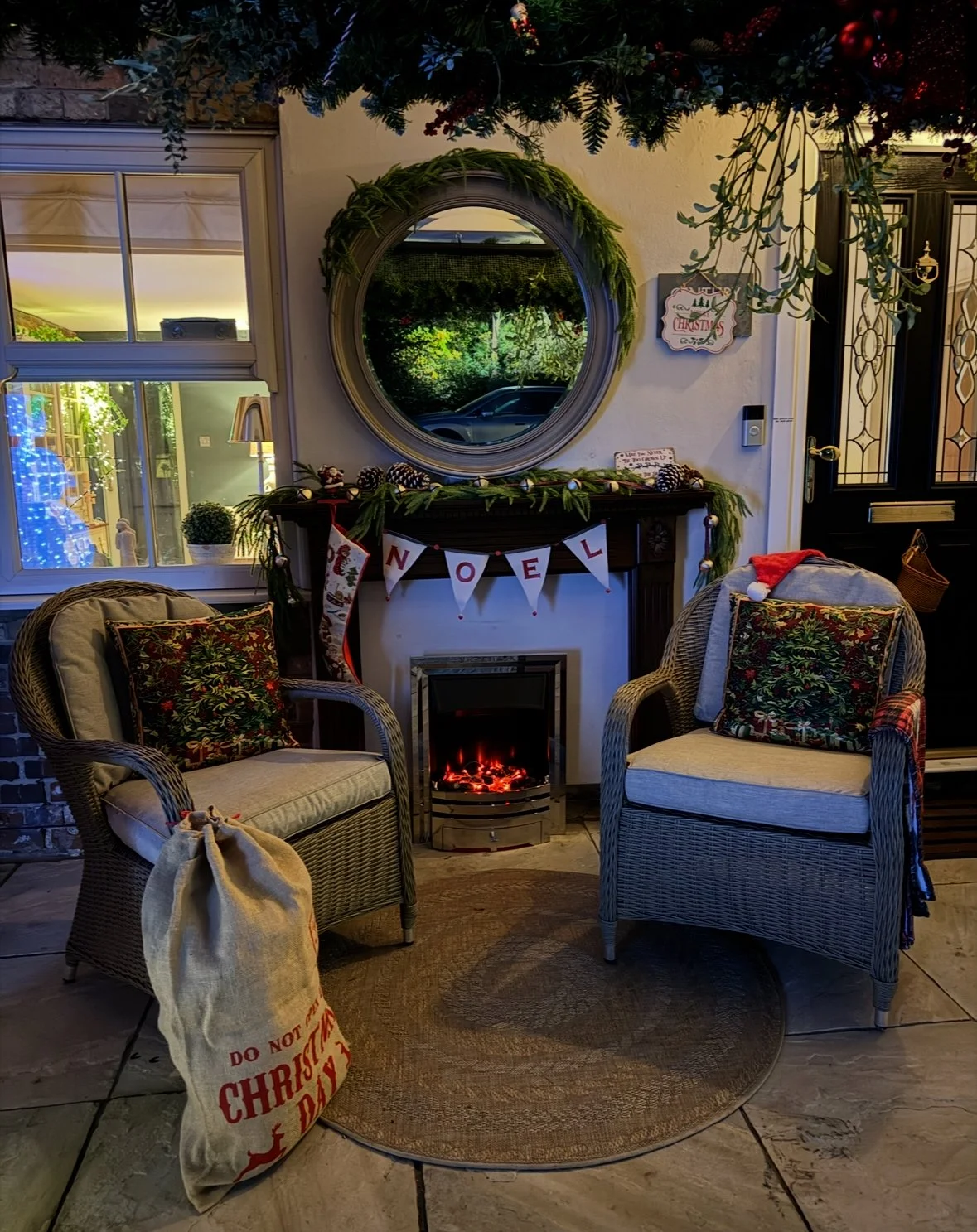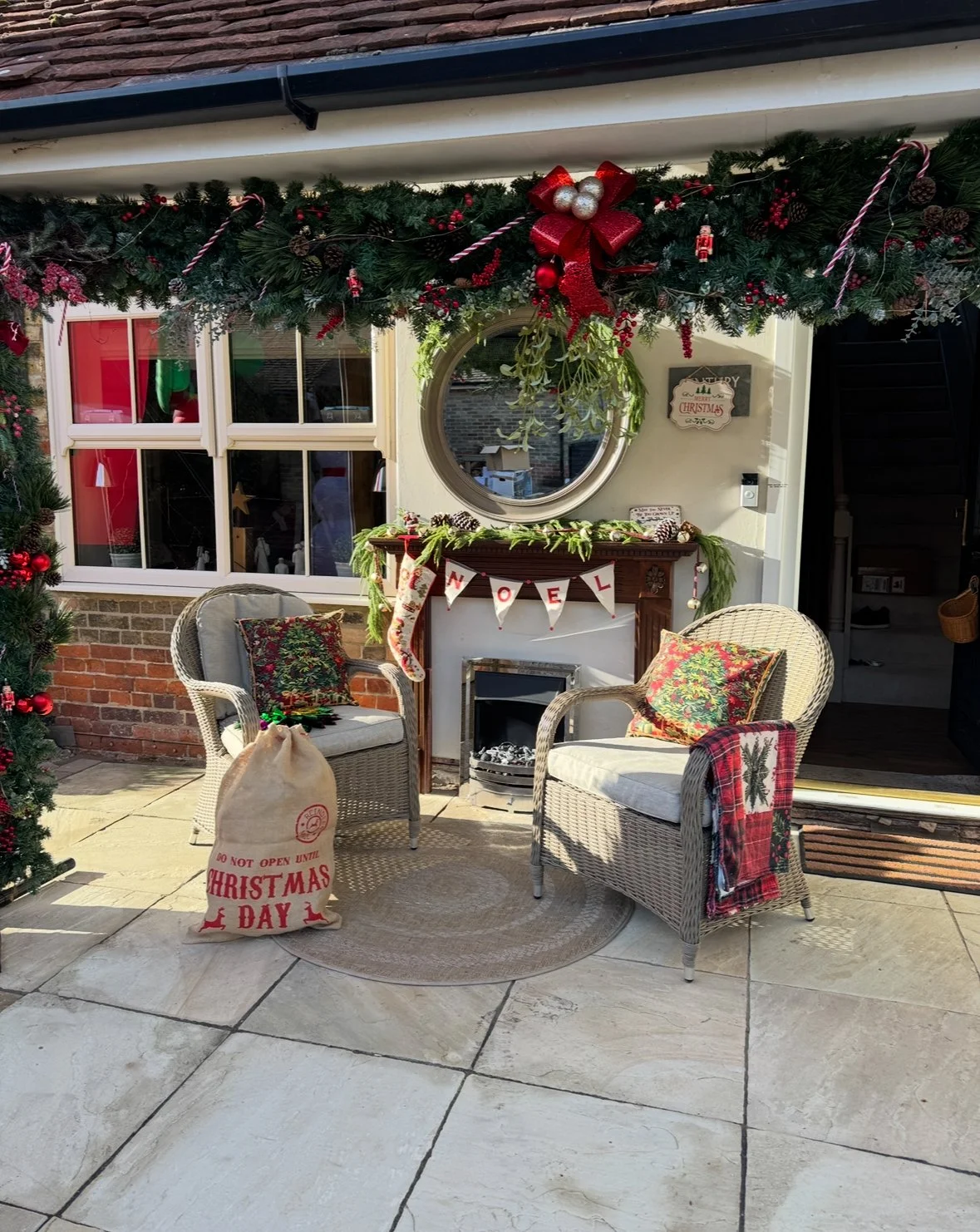 The outside is almost done, I’m just waiting to chop down a Christmas tree that I grew for my porch display, and then I will be sorted.