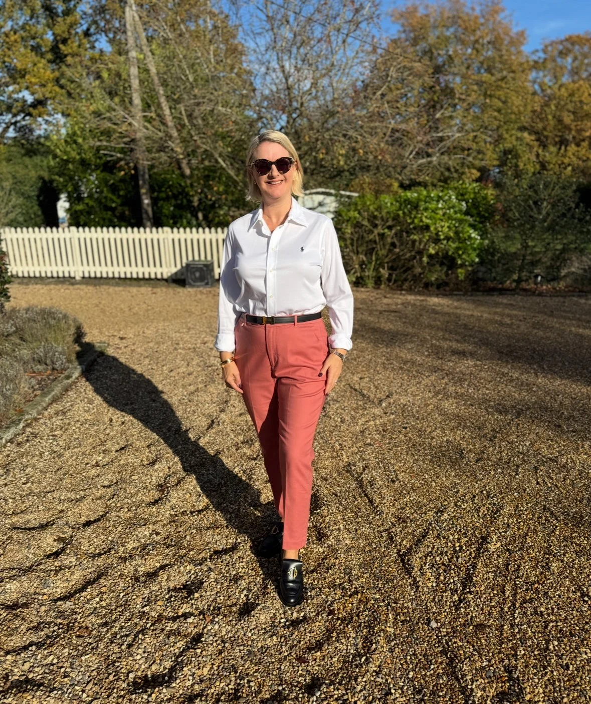Shirt and Trousers from Ralph Lauren, Shoes from Hermes.