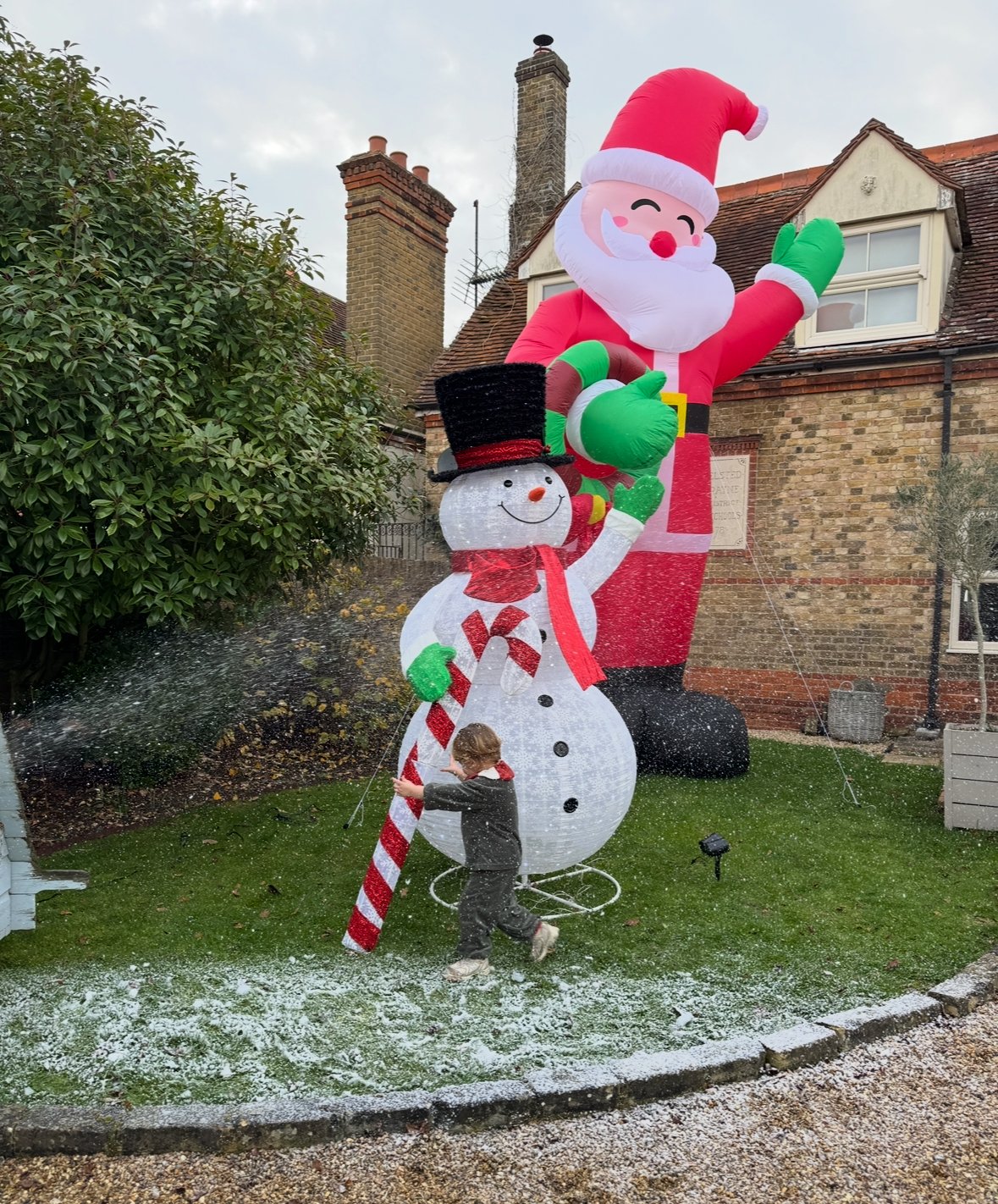 Our neighbours little boy came over to product test the snow machine, he gave it a 5 star review 😂😍