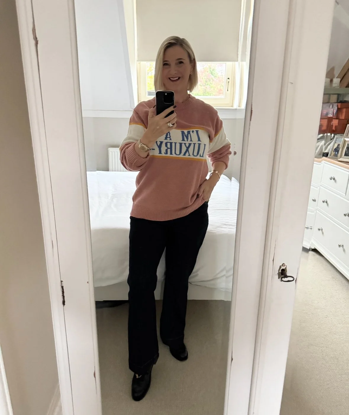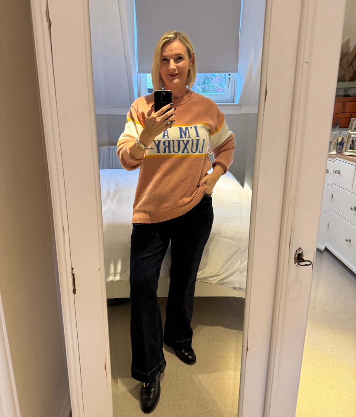 Jumper from Gyles & George (Princess Diana had this jumper, she is my all time favourite style icon, her and Meghan Sussex, plus my aunties Linda and Angela are) Jeans from M&S, Shoes from Hermes