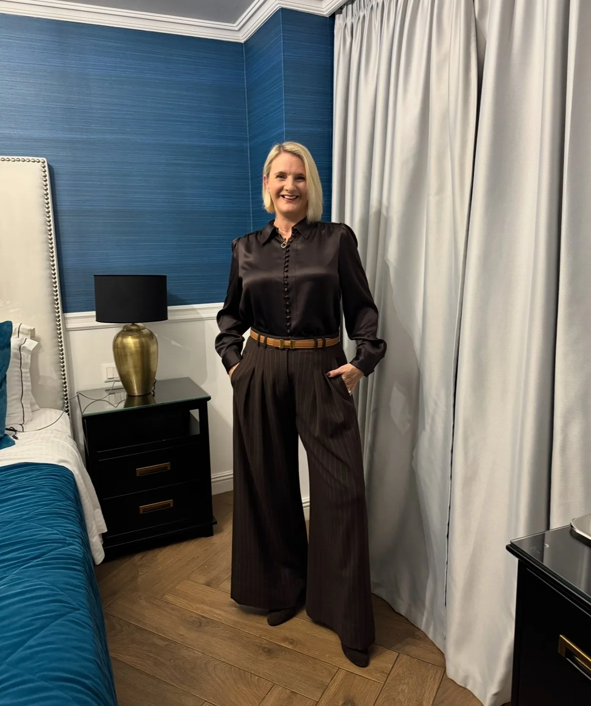 Shirt and trousers from Me & Em, Belt from Hermes, Boots from Selfridges.
