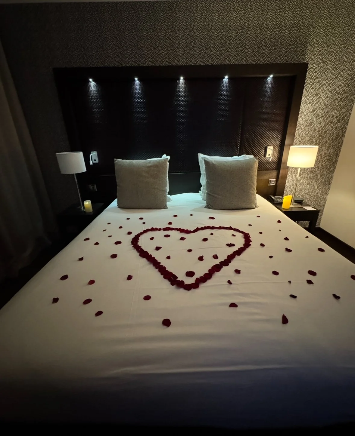 Anyway, unbeknown to me, Chris had arranged flowers, petals and non alcoholic sparkling ‘champagne’ for our arrival.