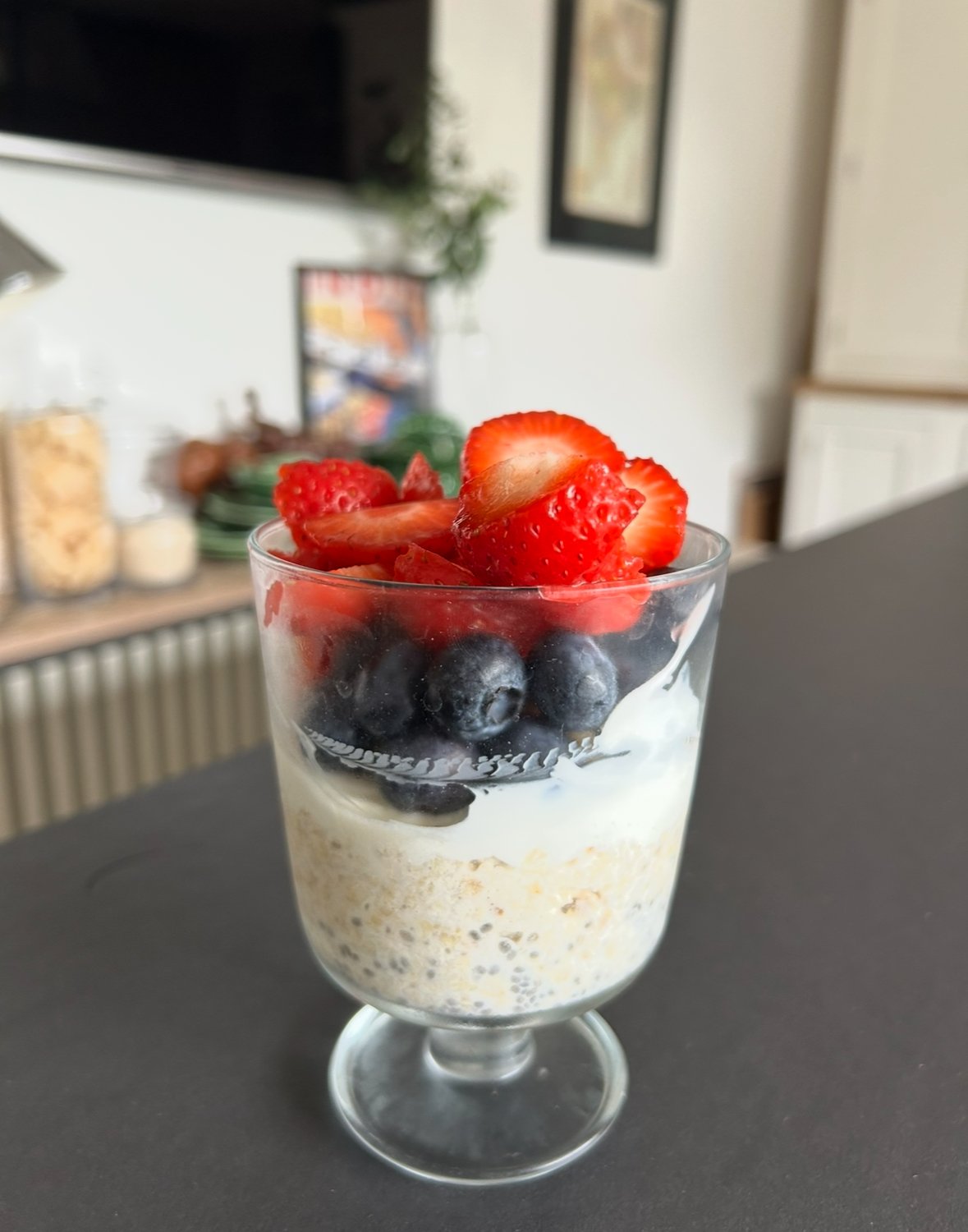 *If you are trying to get more fibre in I made Chris and I these over night oats with chia seeds and fruits.