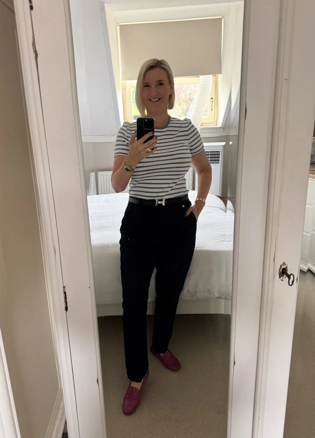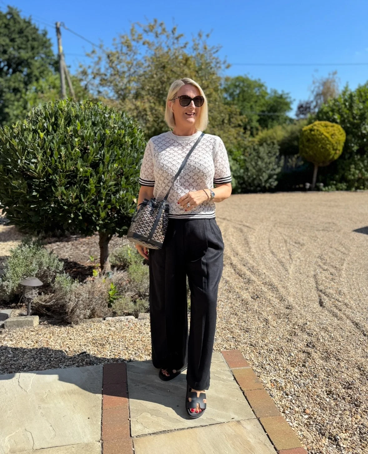 Top and trousers from M&S, Shoes from Hermes, Bag from Goyard