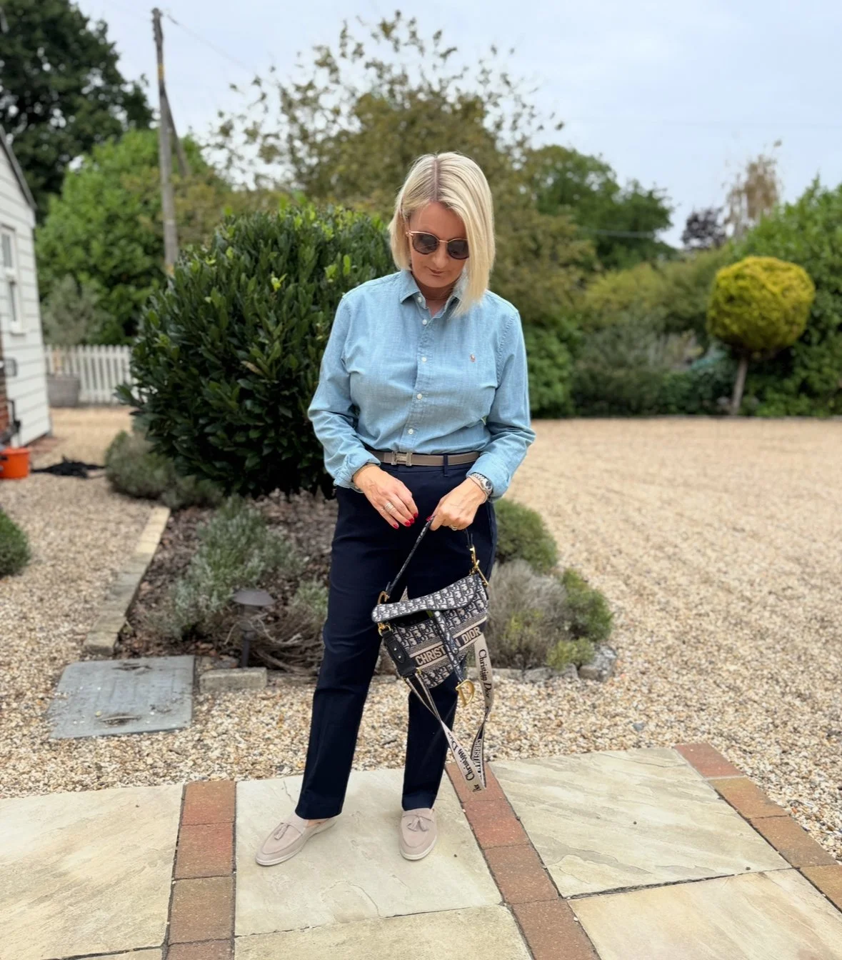 Shirt and trousers from Ralph Lauren, bag from Dior, Shoes from Scarosso