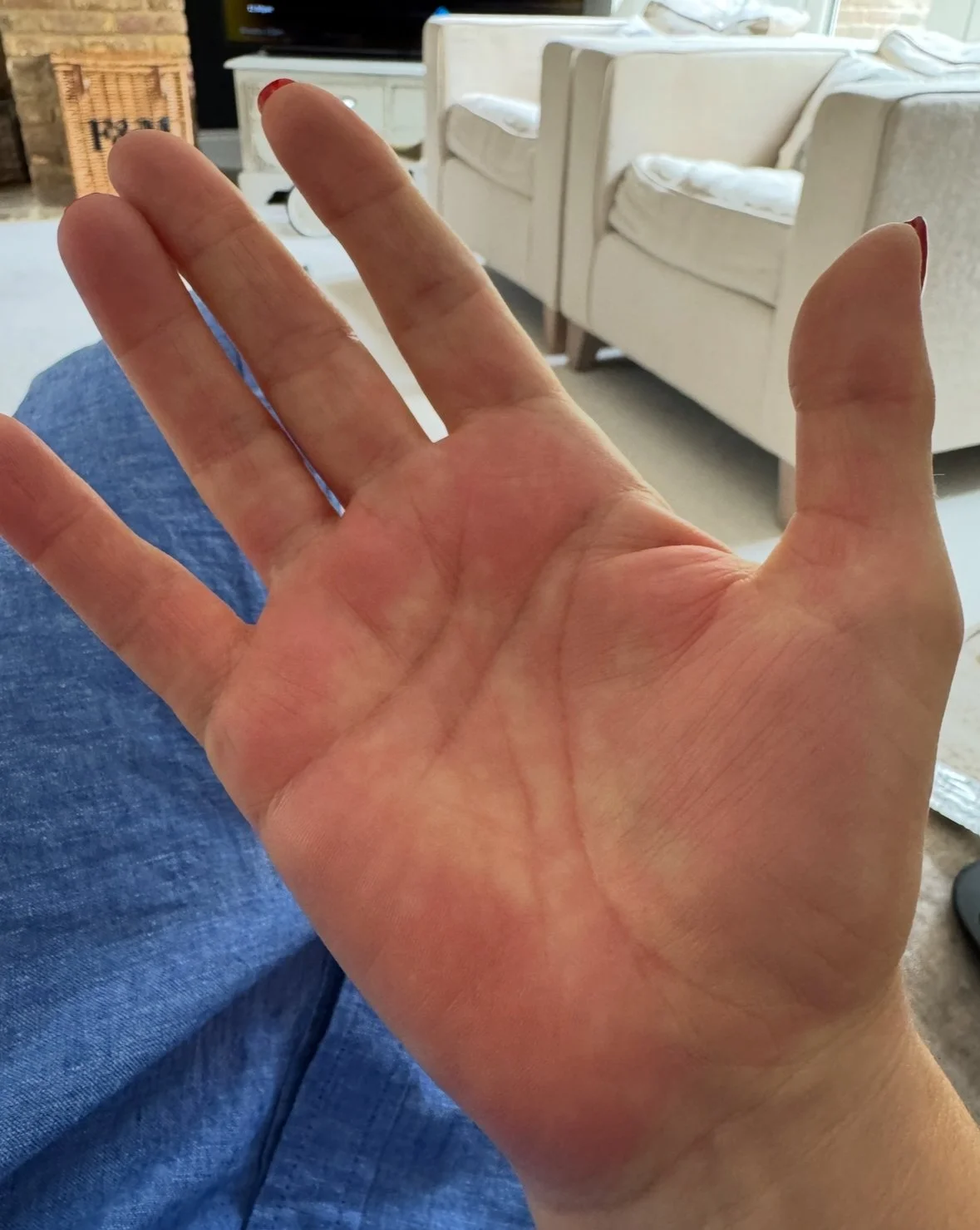 I came home Monday morning and took one tablet of an antibiotic I’ve taken before, and 45 minutes later my hands started to itch and burn, and turn red and blotchy.