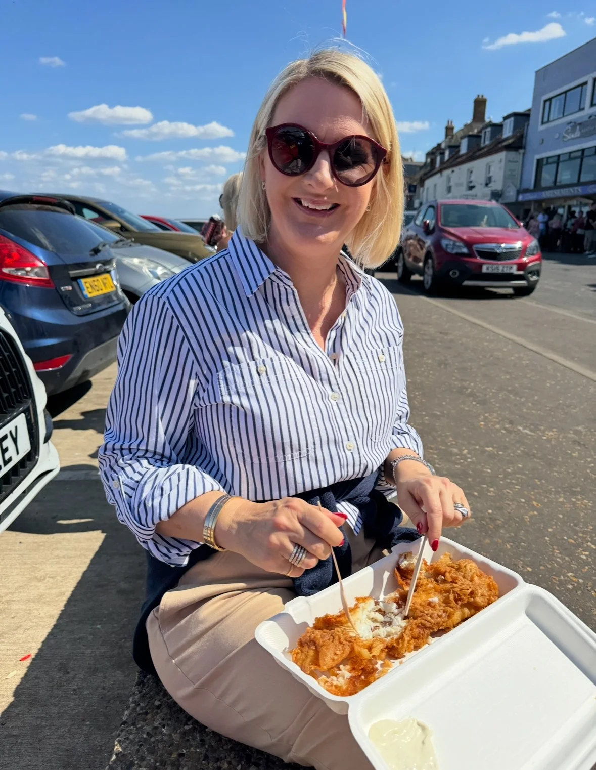 I text Chris at work, and asked if he fancied fish and chips at the beach when he got home. And luckily for me, although he is borderline phobic of sand, he does love chippy chips at the beach.