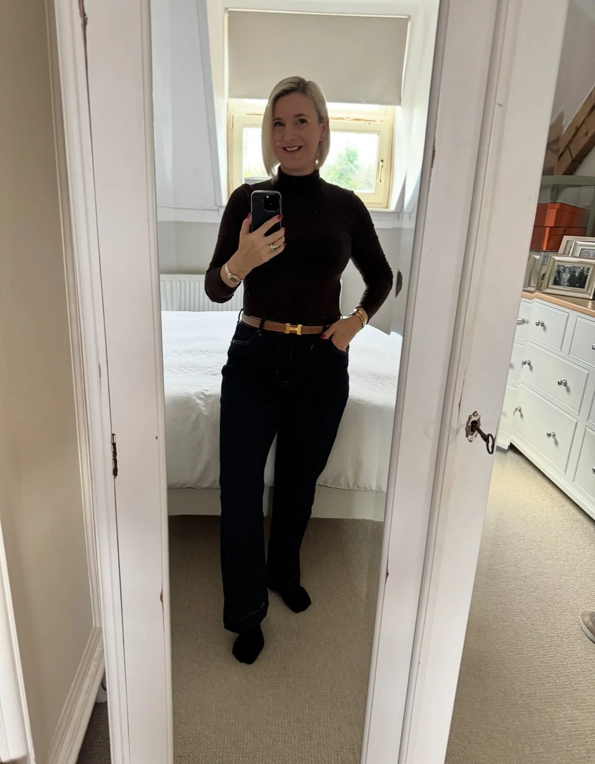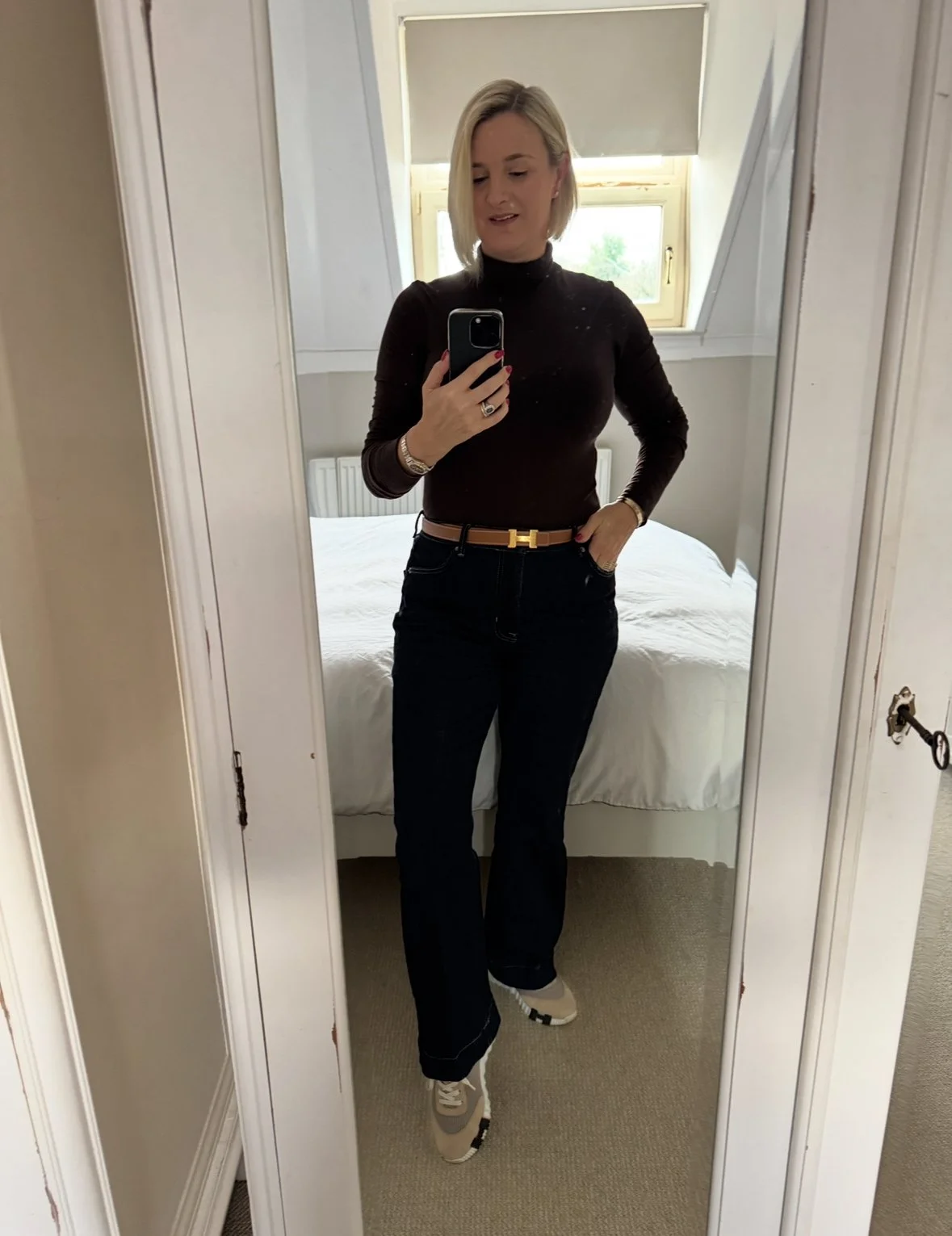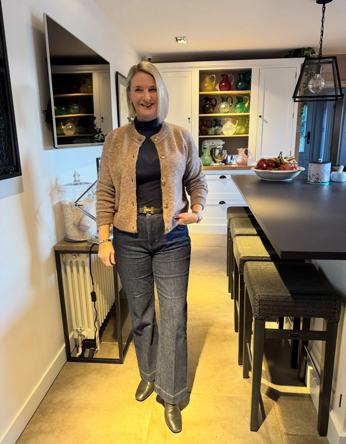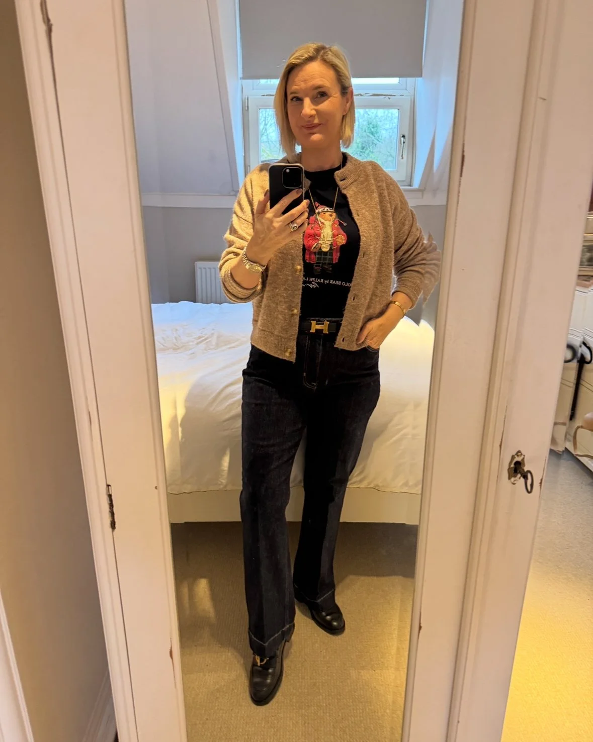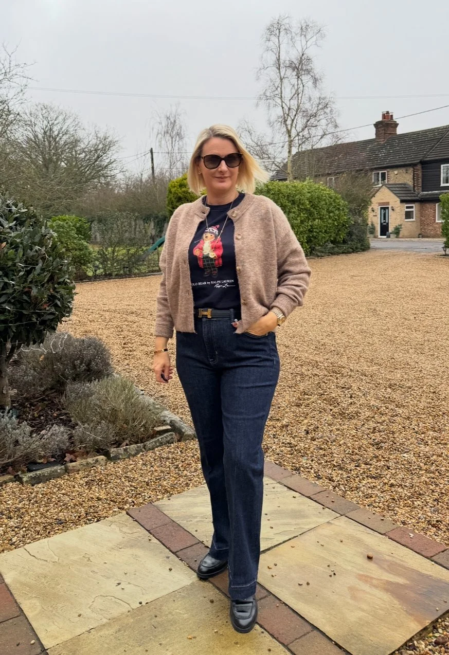 Cardigan from French Connection, T shirt from Ralph Lauren, Jeans from M&S, Shoes from Hermes.