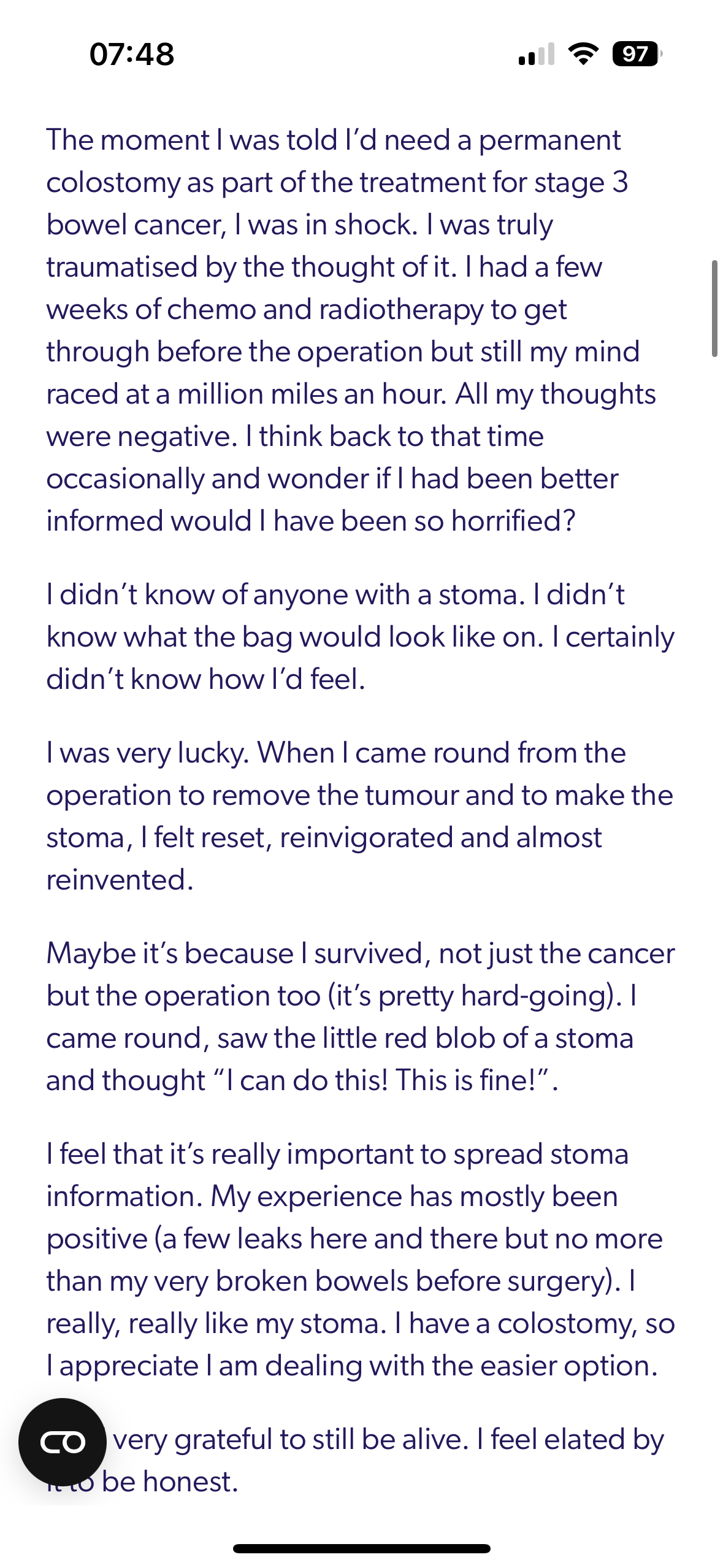 The amount of people who have said to me “I couldn’t live with a stoma! I’d rather die!”