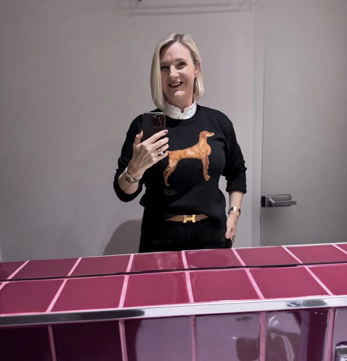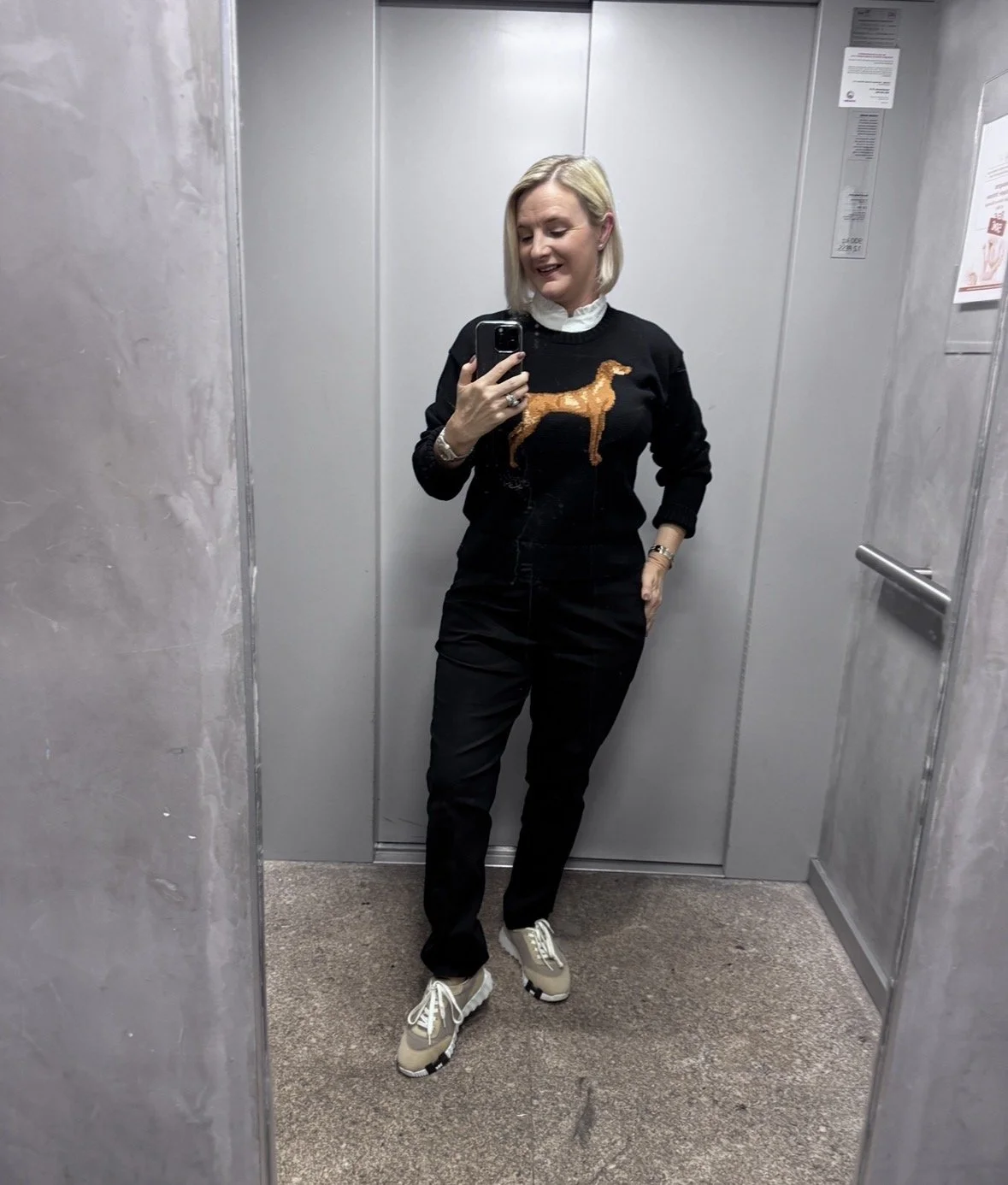 Jumper and Trousers from Ralph Lauren, Faux blouse from Temu, Shoes from Hermes