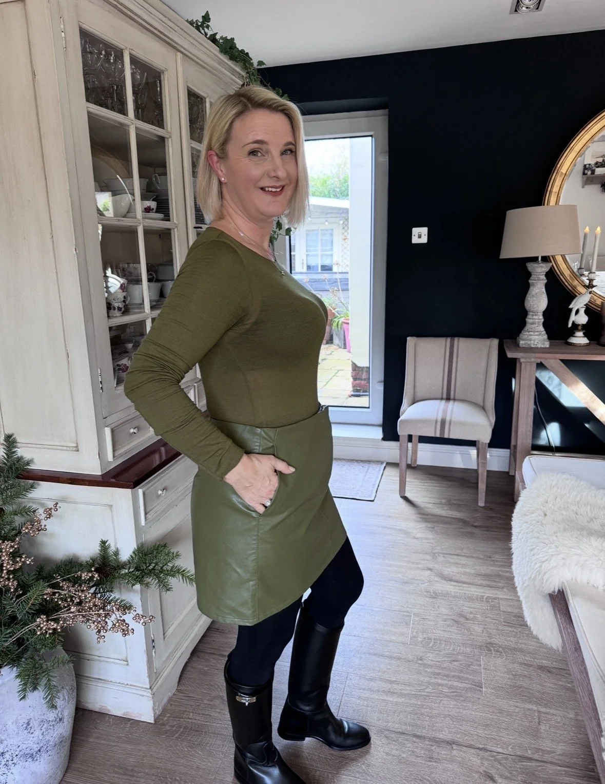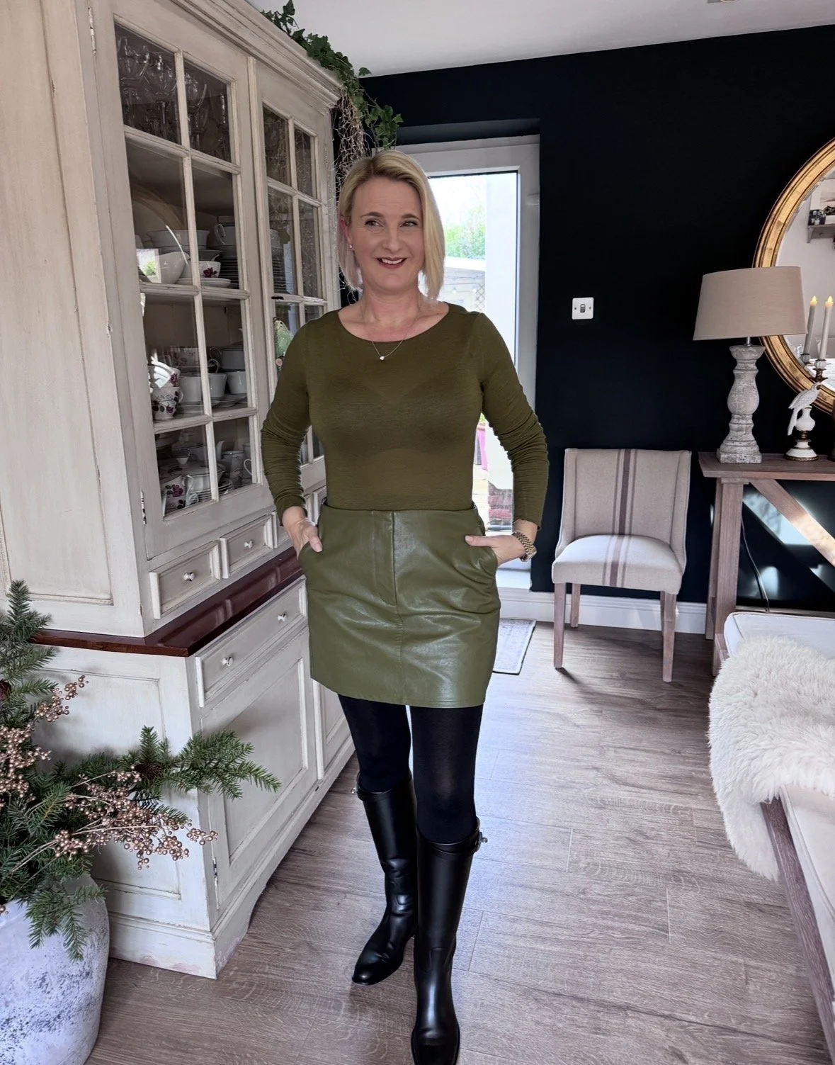 Top from Intimissimi, Skirt from M&S, Tights from Snag, Boots from Hermes.