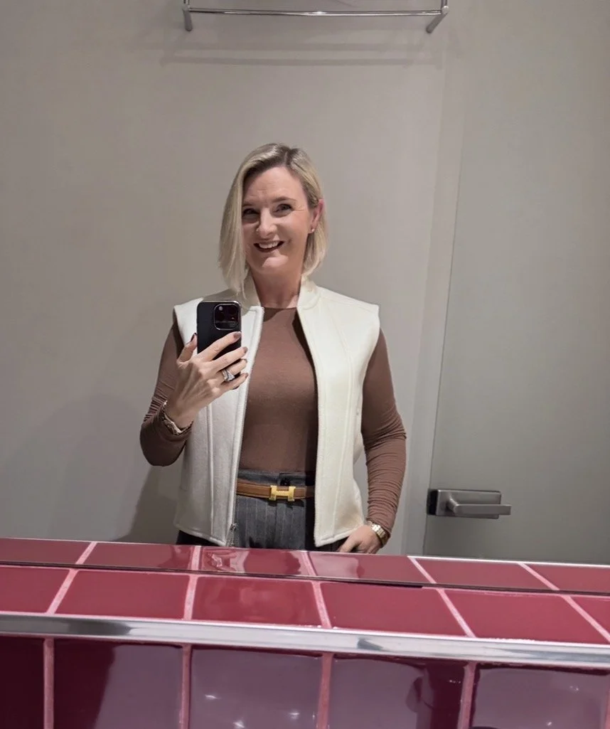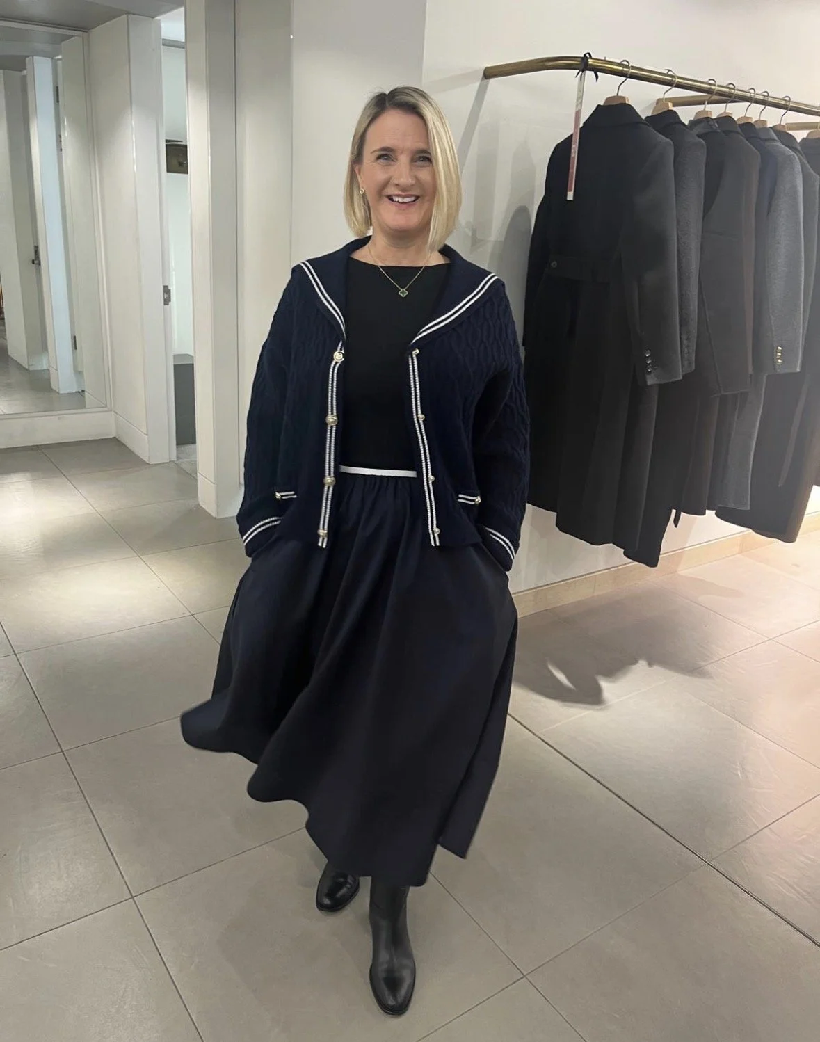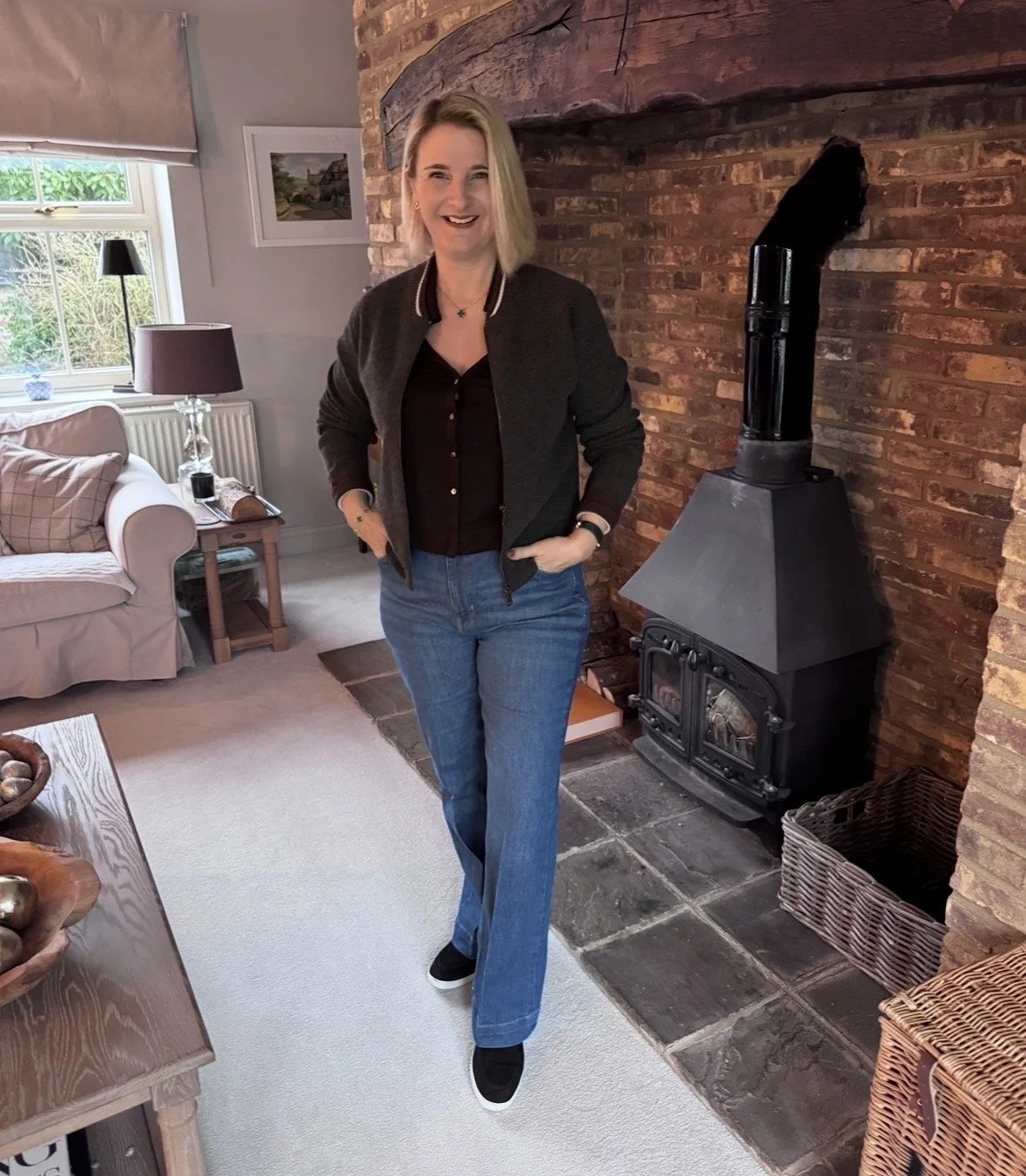 Top from The White Company, Cardigan from Me&Em, Jeans from M&S, Shoes from Hermes.