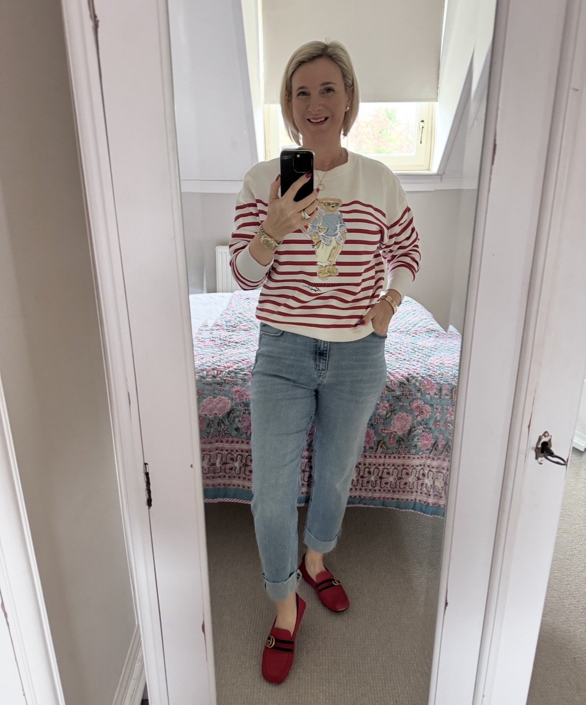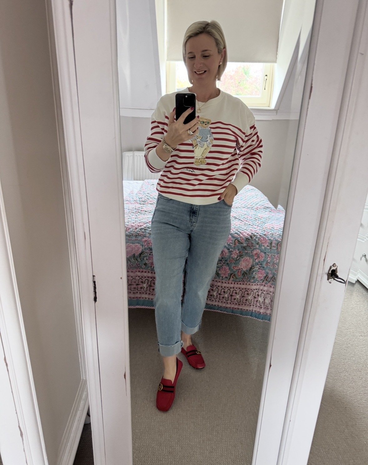 Top from Ralph Lauren, Jeans from M&S, Shoes from Gucci