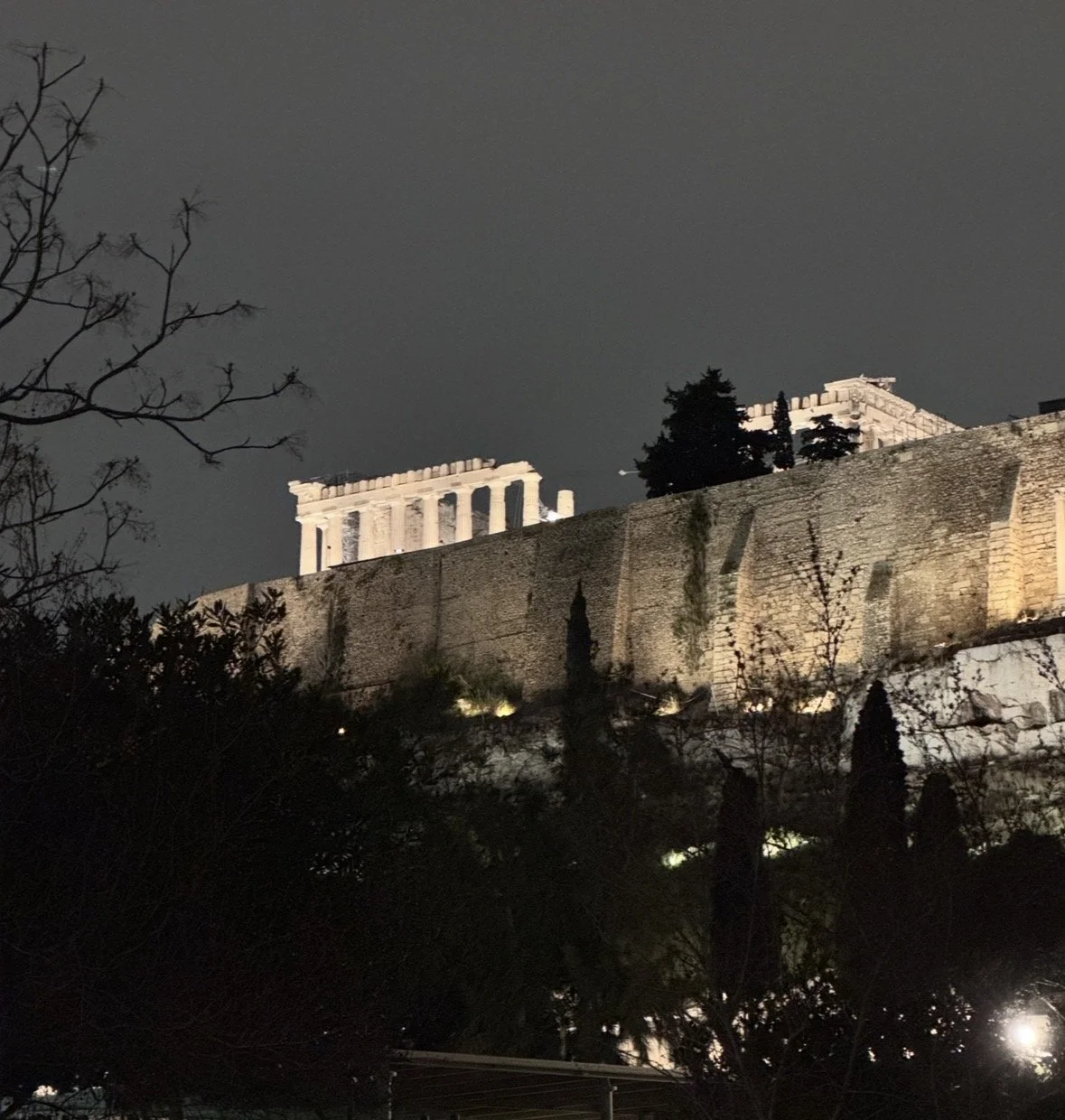 Our first meal together was at a rooftop restaurant overlooking the Acropolis. It’s very beautiful at night.