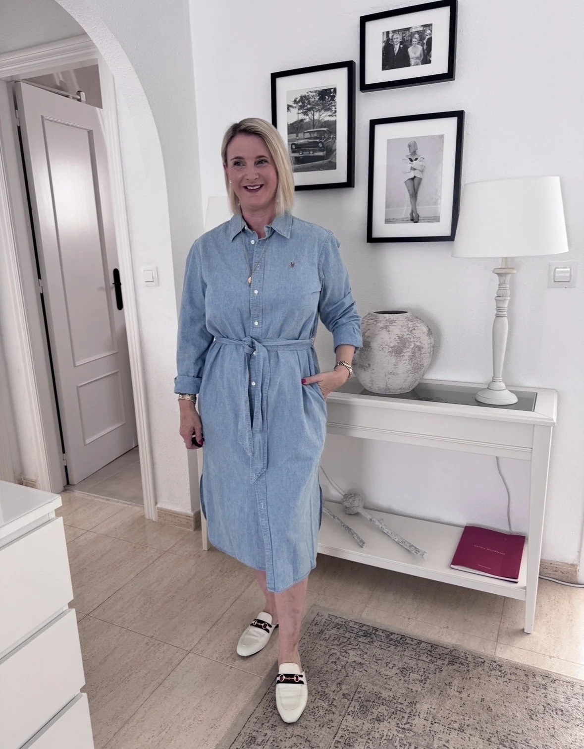 Dress from Ralph Lauren, Shoes from Gucci