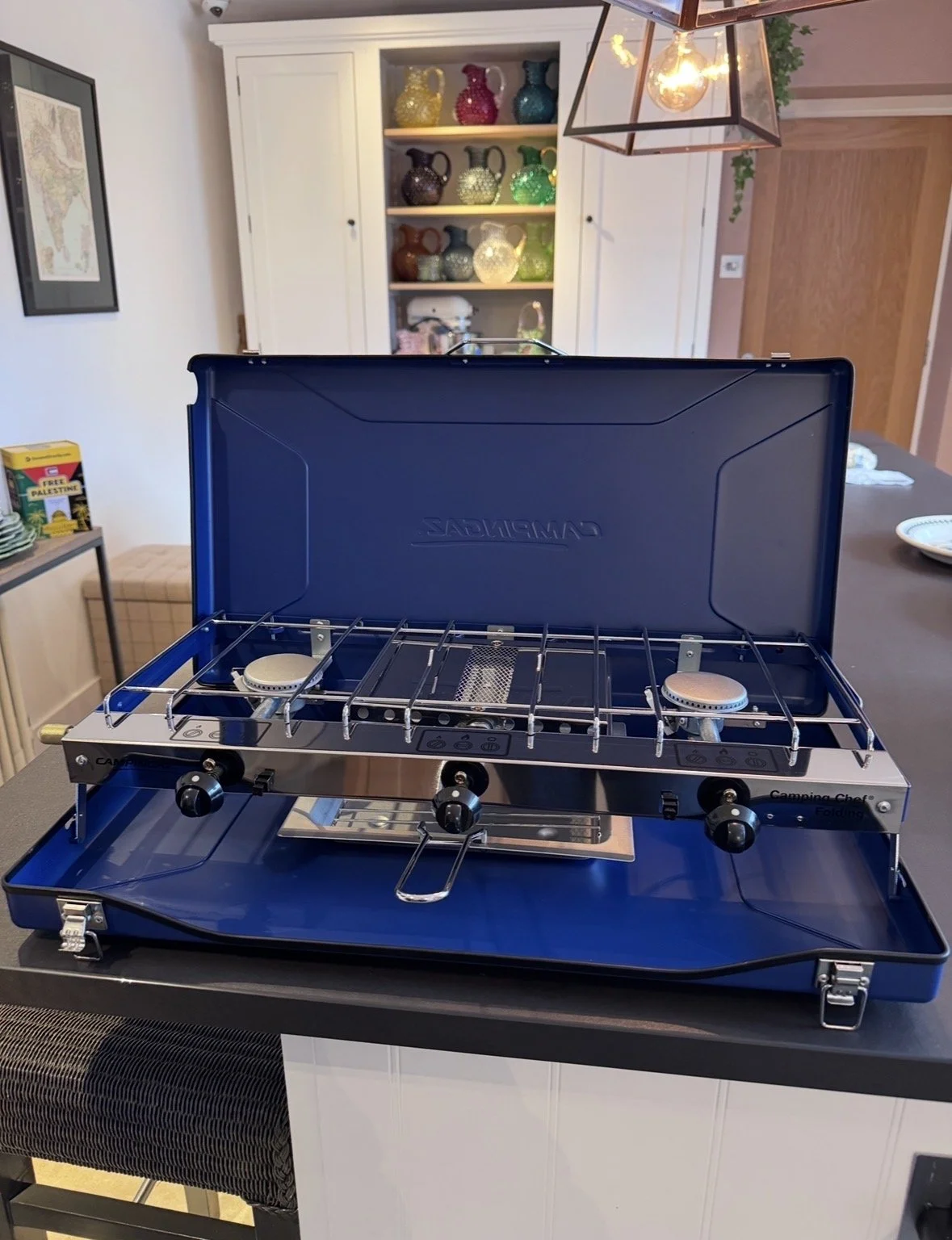 We bought a camping gas cooker, and gas bottles. So we can heat food if there’s power outages.