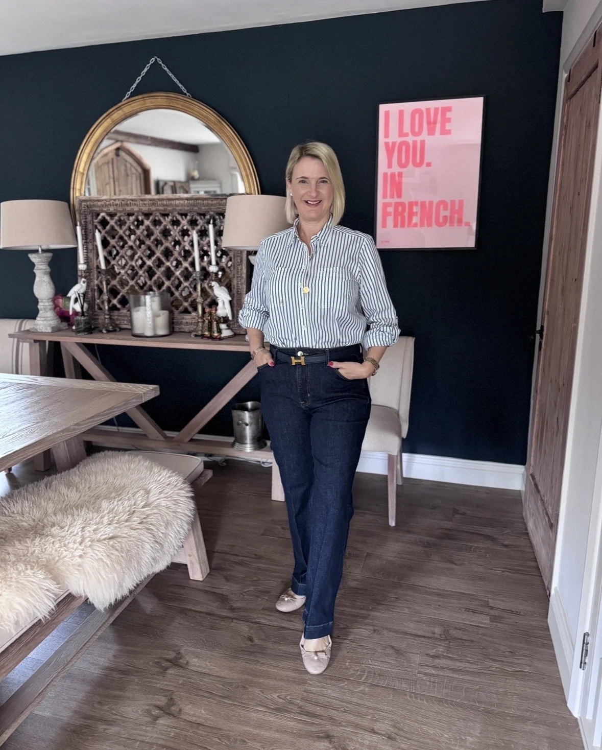 Top from Ralph Lauren, Jeans from M&S, Shoes from Dior.