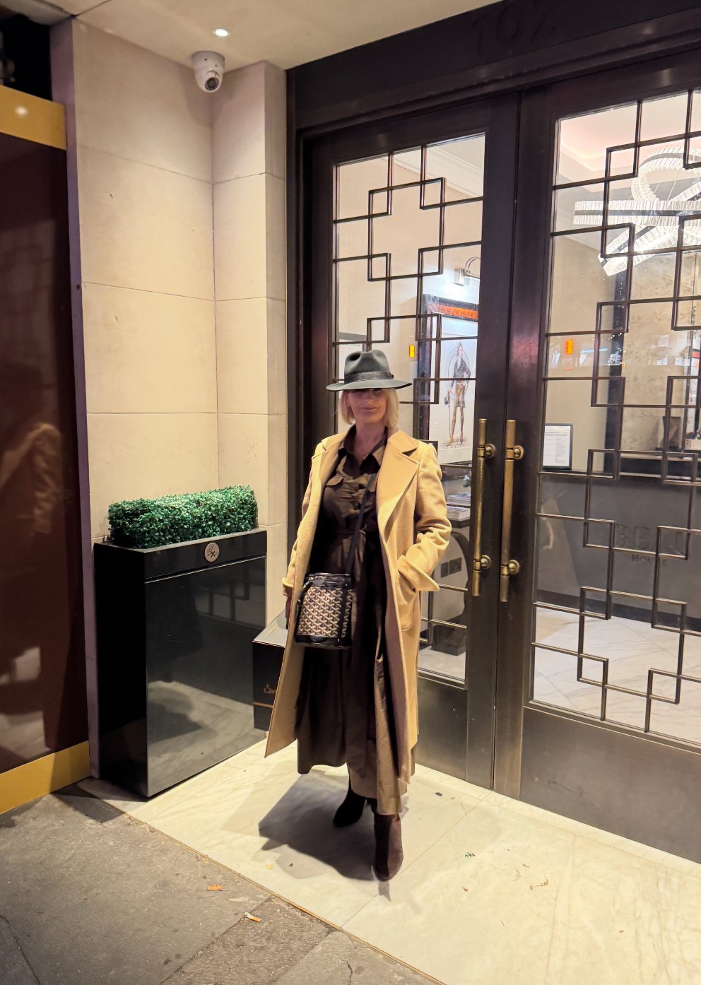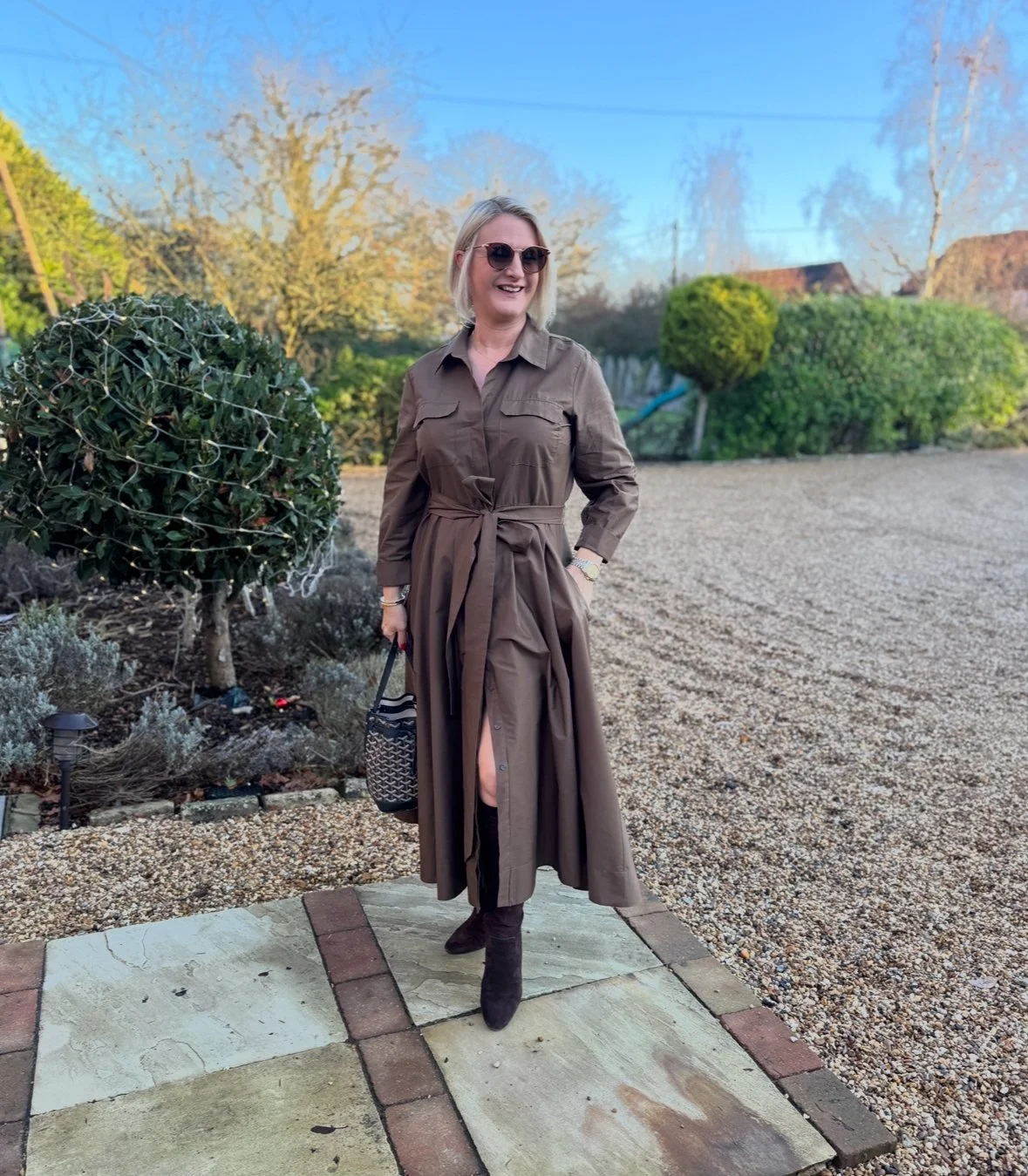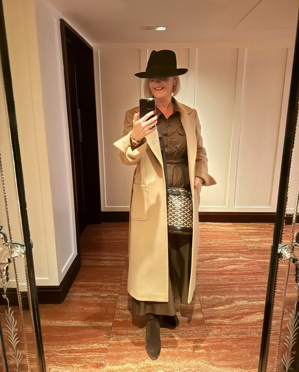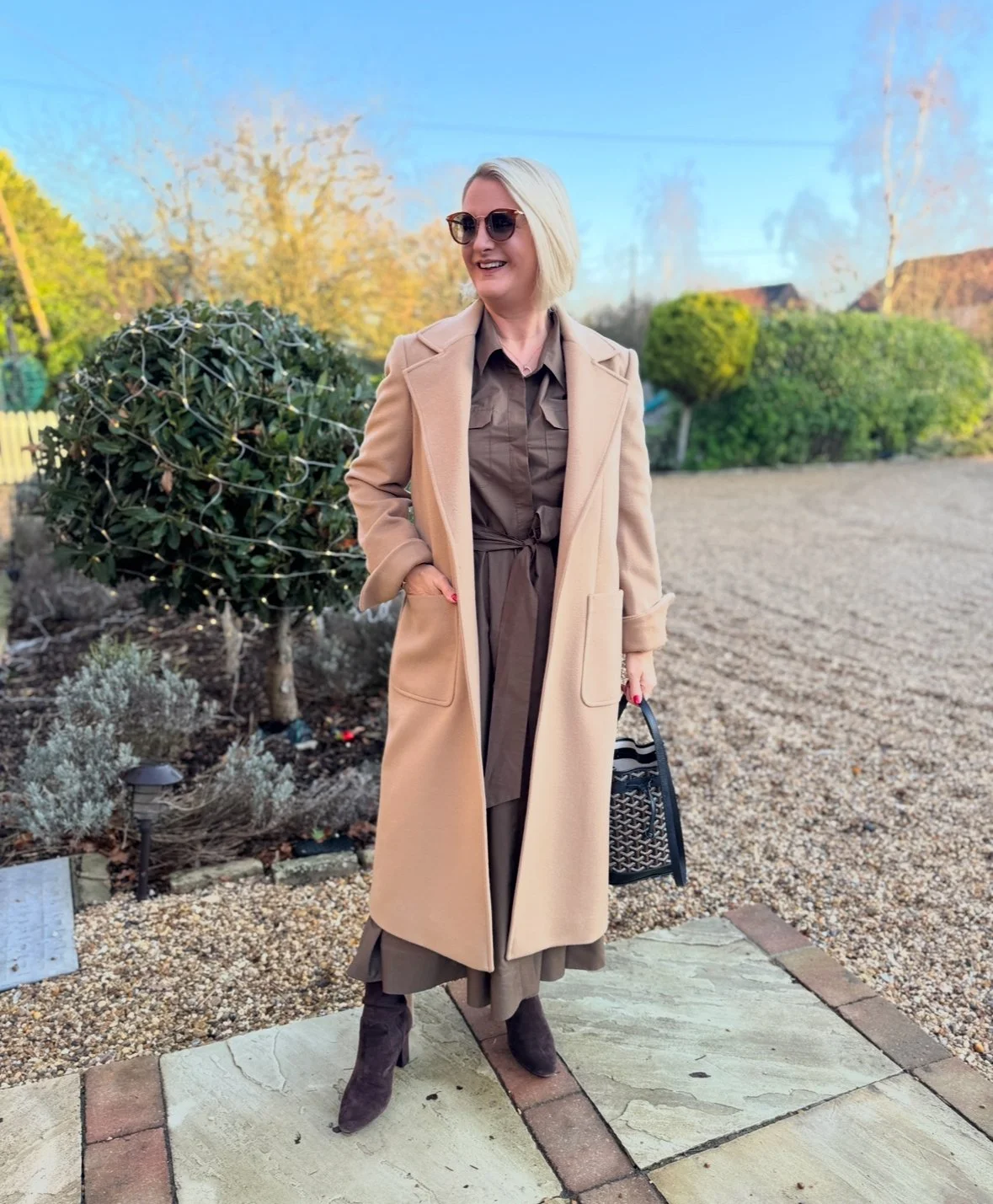 Dress from Zara, Boots from Selfridges, Bag from Goyard, Coat from Max & Co