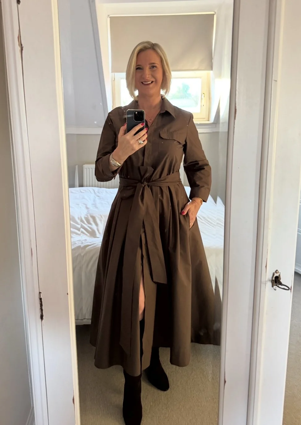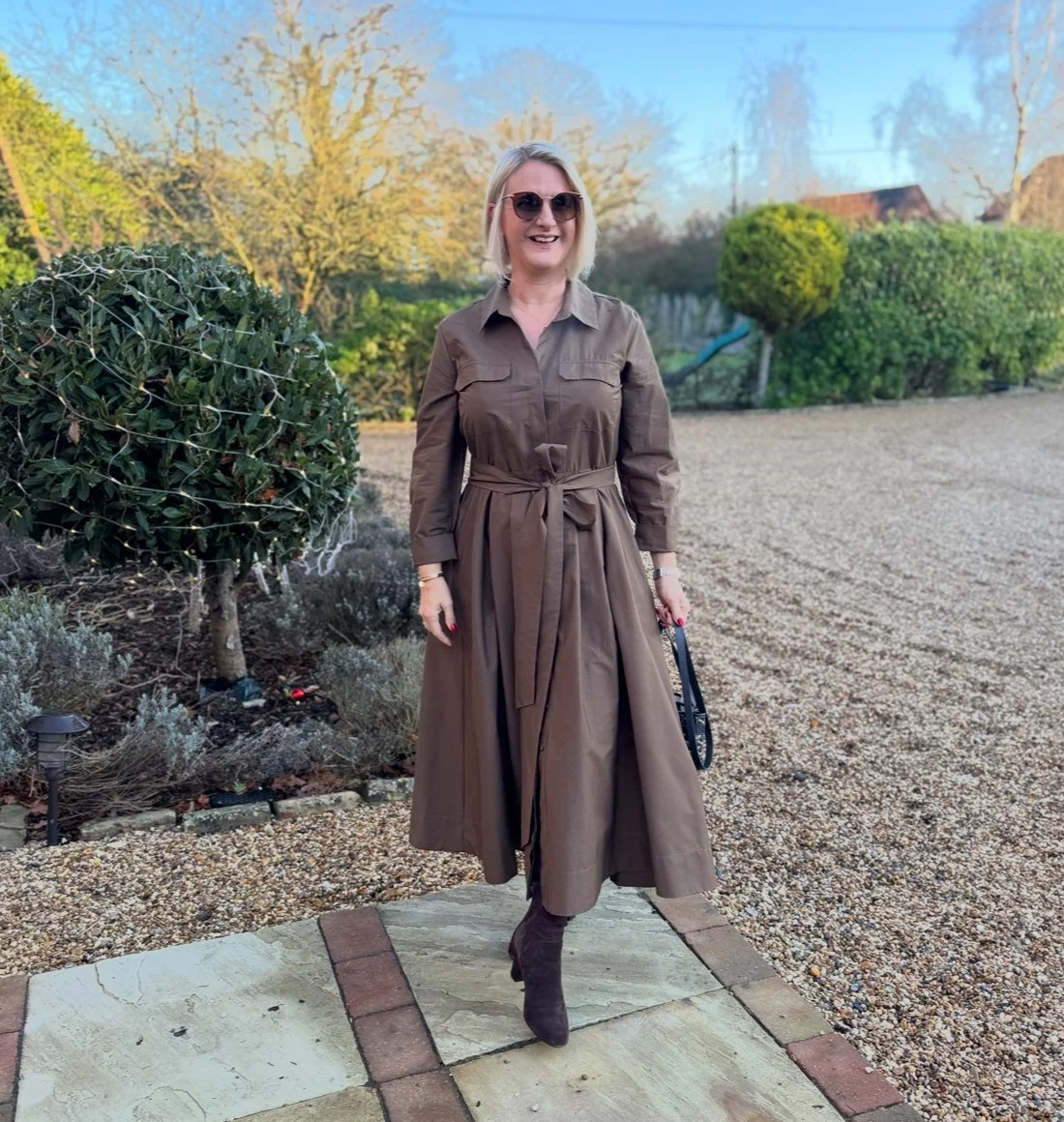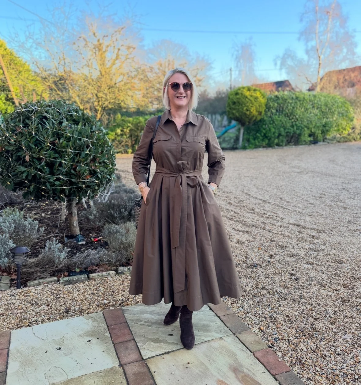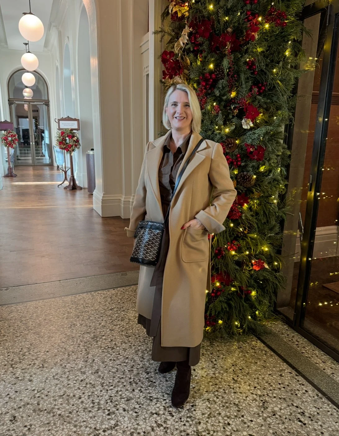 Dress from Zara, Boots from Selfridges, Bag from Goyard, Coat from Max & Co