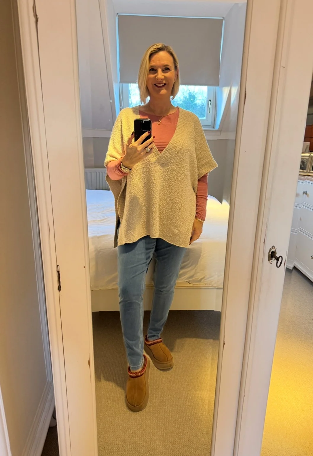 Top from Intimissimi, Jumper from DKNY, Jeans from Tesco, Shoes from Ugg